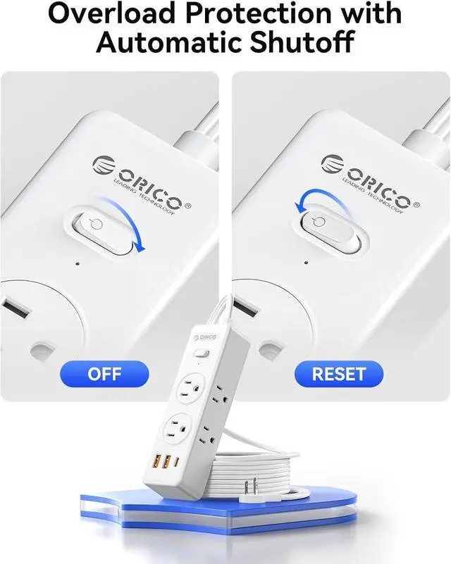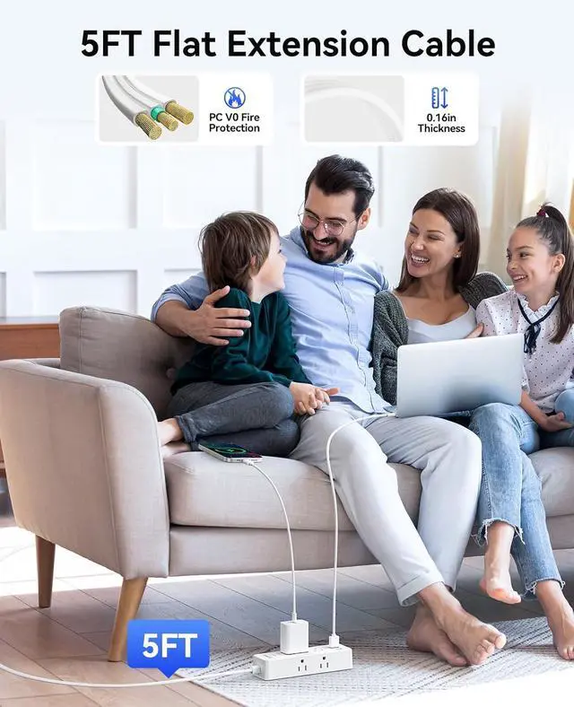 Advanced Safety FeaturesThis 5 ft extension cord offers comprehensive protection: ON/OFF switch, overload, over-current, over-voltage, and 1382 fireproof overheating safeguards. Made from premium V0 grade ABS+PC material for durability and flame resistance