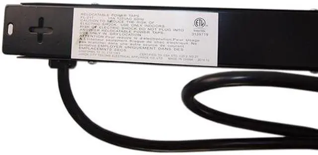 Power Zone 800-5118 (LIKE PPP PP-60612 BLK 4' Metal 12 Outlet Workshop Power Strip) Black 4' Metal 12 Outlet Workshop Power Strip, specially designed with 15A/125V, 1875W, and it is ETL listed. This power strip features a 6' foot cord, a lighted on/off circuit breaker switch that protects against overloads, 12 wide-spaced outlets for transformer plugs, a heavy duty metal casing, mounting holes, and mounting screws and bracket. This power strip will not protect against damaging power surges.