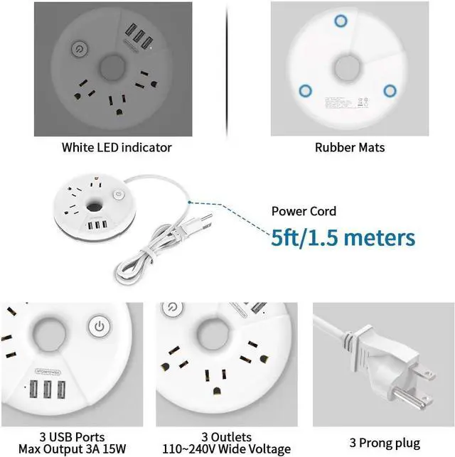 - Round power strip ensures complete protection against electrical short circuit, over heat, over charging, over current and over voltage.