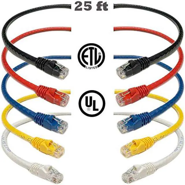 iMBAPrice Mixed Colors - 25 feet RJ45 Cat6 Snagless Ethernet Patch Cable Multi Color (Red, Blue, Black, White, Yellow) -