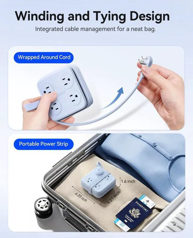 Winding and Tying Design: The design cleverly secures and organizes coiled cables, preventing tangles and maintaining a tidy appearance.