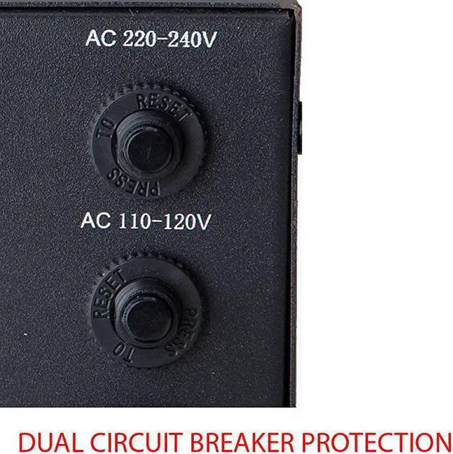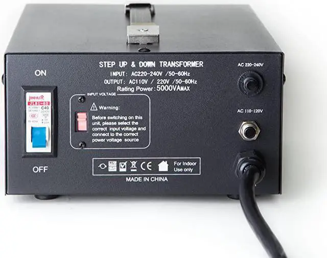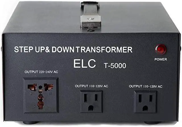 Style: 5000 Watt Series of step up/down voltage transformers offers you a safe, reliable, affordable & convenient solution to converting voltages from 110-120 volt up to 220-240 volt or from 220-240 volt down to 110-120 volt for both home use & industrial applications. The t-5000+ is rated at 3, 000 watts maximum. It features a heavy-duty cord with a standard US 3-prong plug. There are a total of three outputs on the front panel. Two are grounded 110V outputs designated for 120 Volts with a us standard outlet and the 220 volt only universal Outlet which accepts plugs from most countries. For safety, it's recommended by the manufacturer that the voltage transformer's maximum power should be equal or greater than the power rating of your appliance multiplied by 1.5. For example, if you have an appliance rated at 100 watts, you will need to pick a transformer with a maximum power of 150 watts or greater. The T Series also features circuit breakers which protect the equipment and the transformer against overload. With circuit breaker protection You'll never need to replace fuses.
