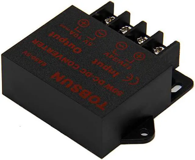 • **********Convert unstable 8V-40V DC power supply into stable 5V 10A DC power output*****Over-voltage, over current, over temperature, short circuit auto protection, and can return to normal conditions in the work*****Essential for car audio system or other 5V car products (particularly useful in vehicles with 24V power supply)*****Input voltage: 12/24V ,Output: 5V/10A*****This Voltage regulator widely used in automotive, surveillance systems, railway signals, medical equipment, instruments and meters, LED products, LED strips, cable TV and other low power test systems