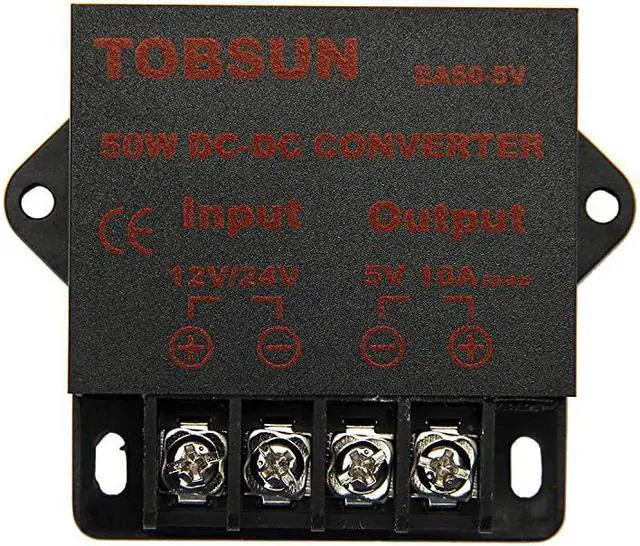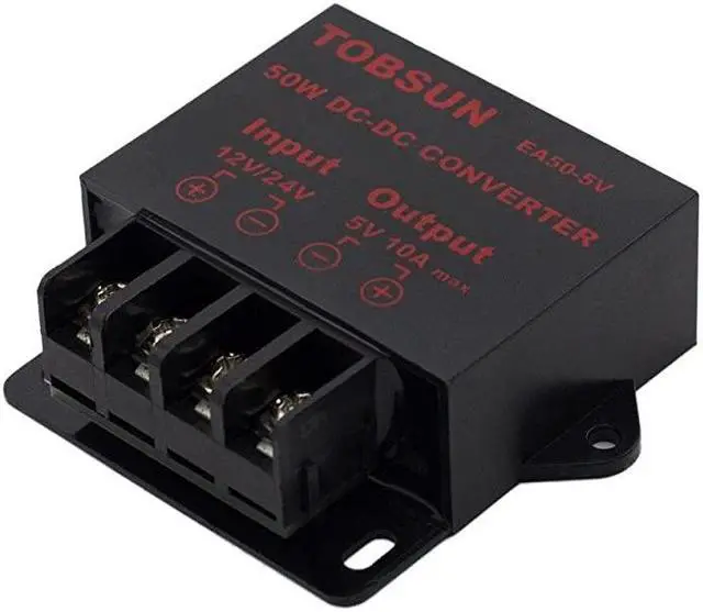 **********Convert unstable 8V-40V DC power supply into stable 5V 10A DC power output*****Over-voltage, over current, over temperature, short circuit auto protection, and can return to normal conditions in the work*****Essential for car audio system or other 5V car products (particularly useful in vehicles with 24V power supply) *****Input voltage: 12/24V, Output: 5V/10A*****This Voltage regulator widely used in automotive, surveillance systems, railway signals, medical equipment, instruments and meters, LED products, LED strips, cable TV and other low power test systems