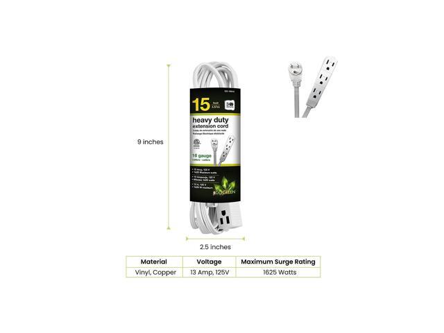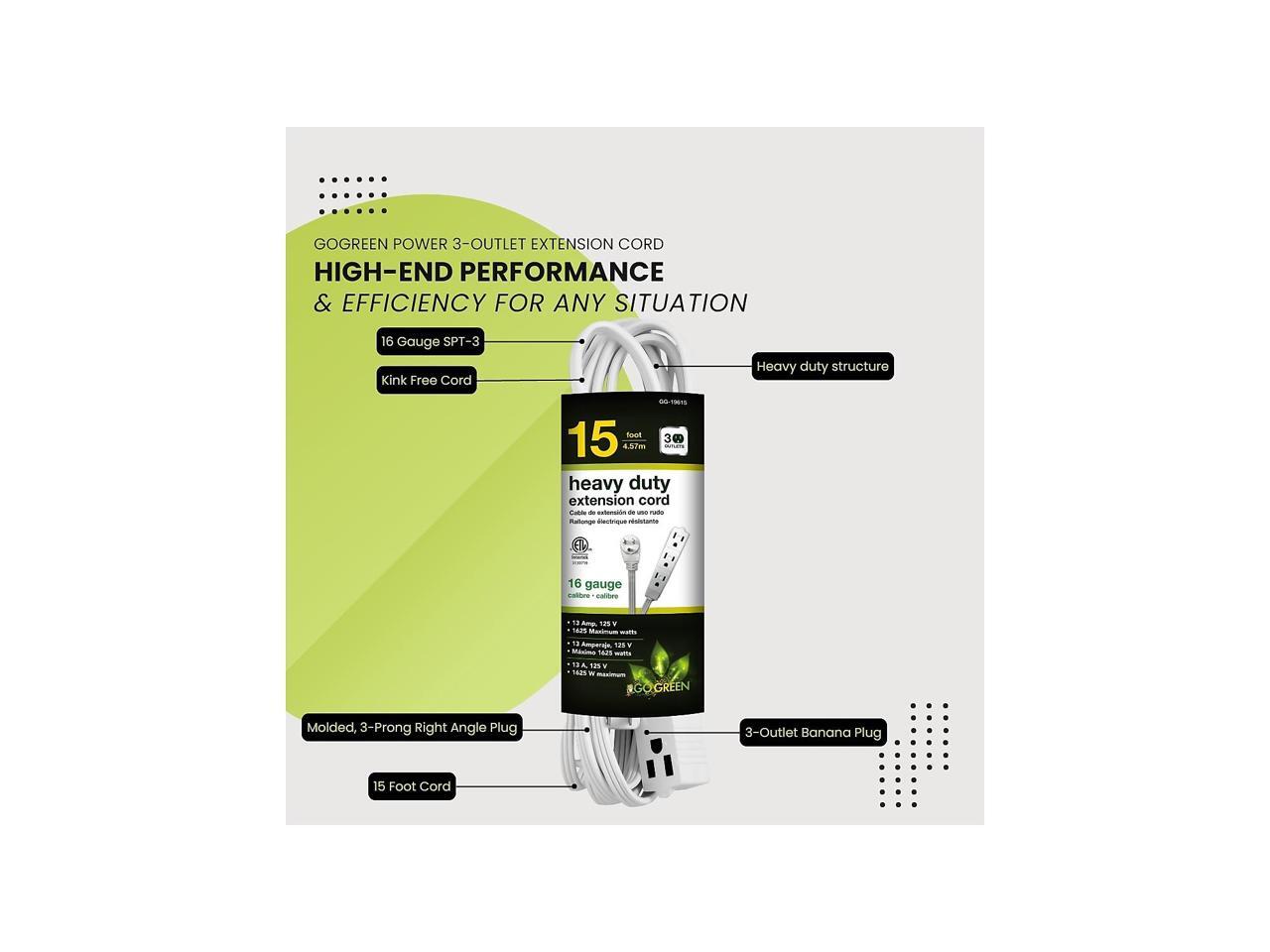 Go Green Power 15' Extension Cord 3-Outlet 16 AWG White (GG-19615)