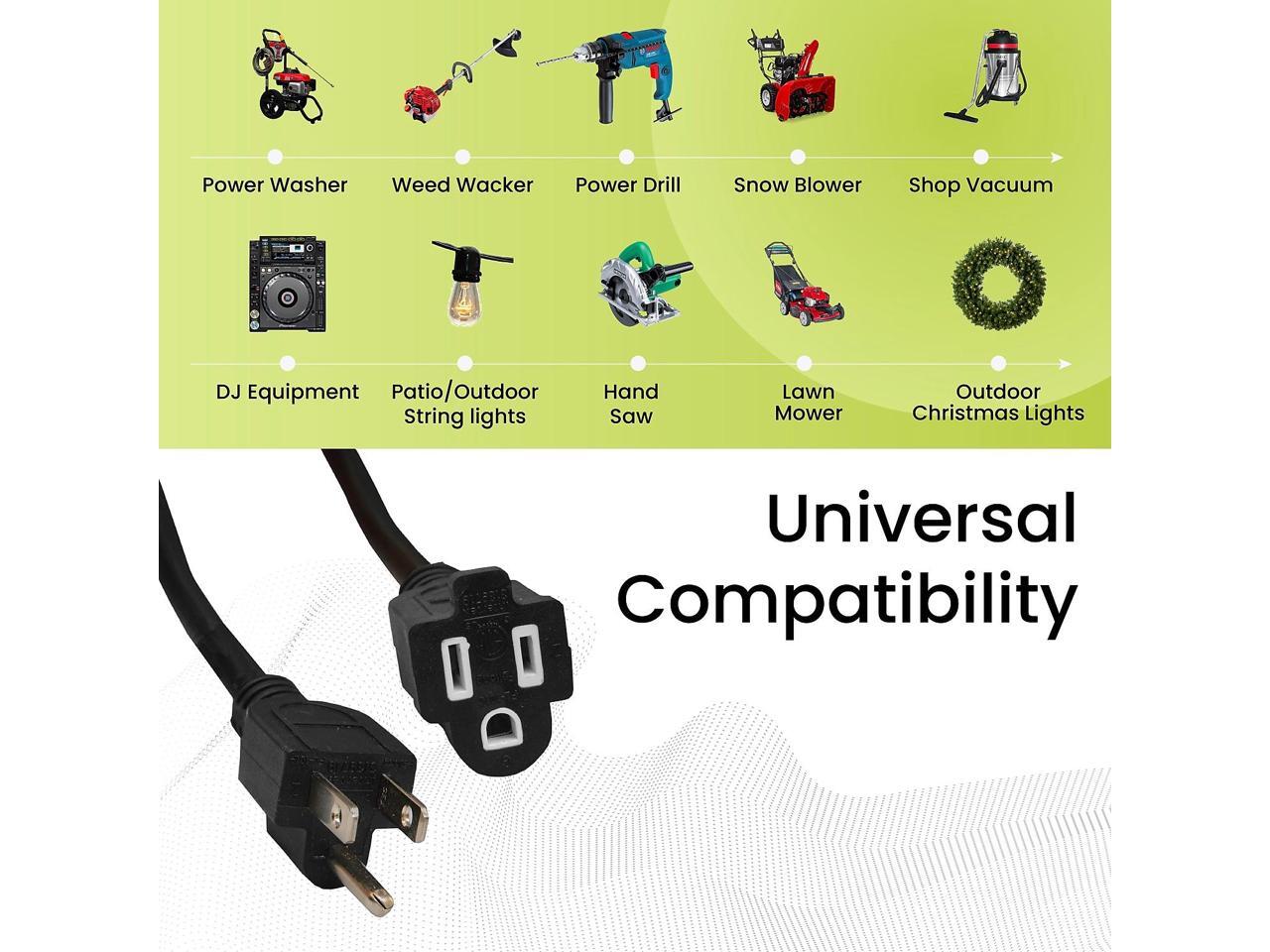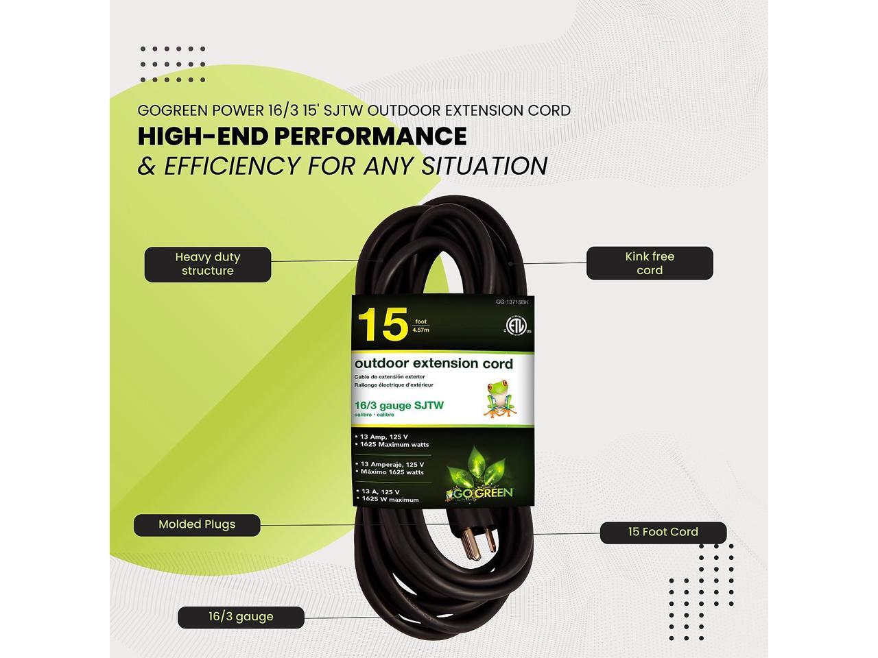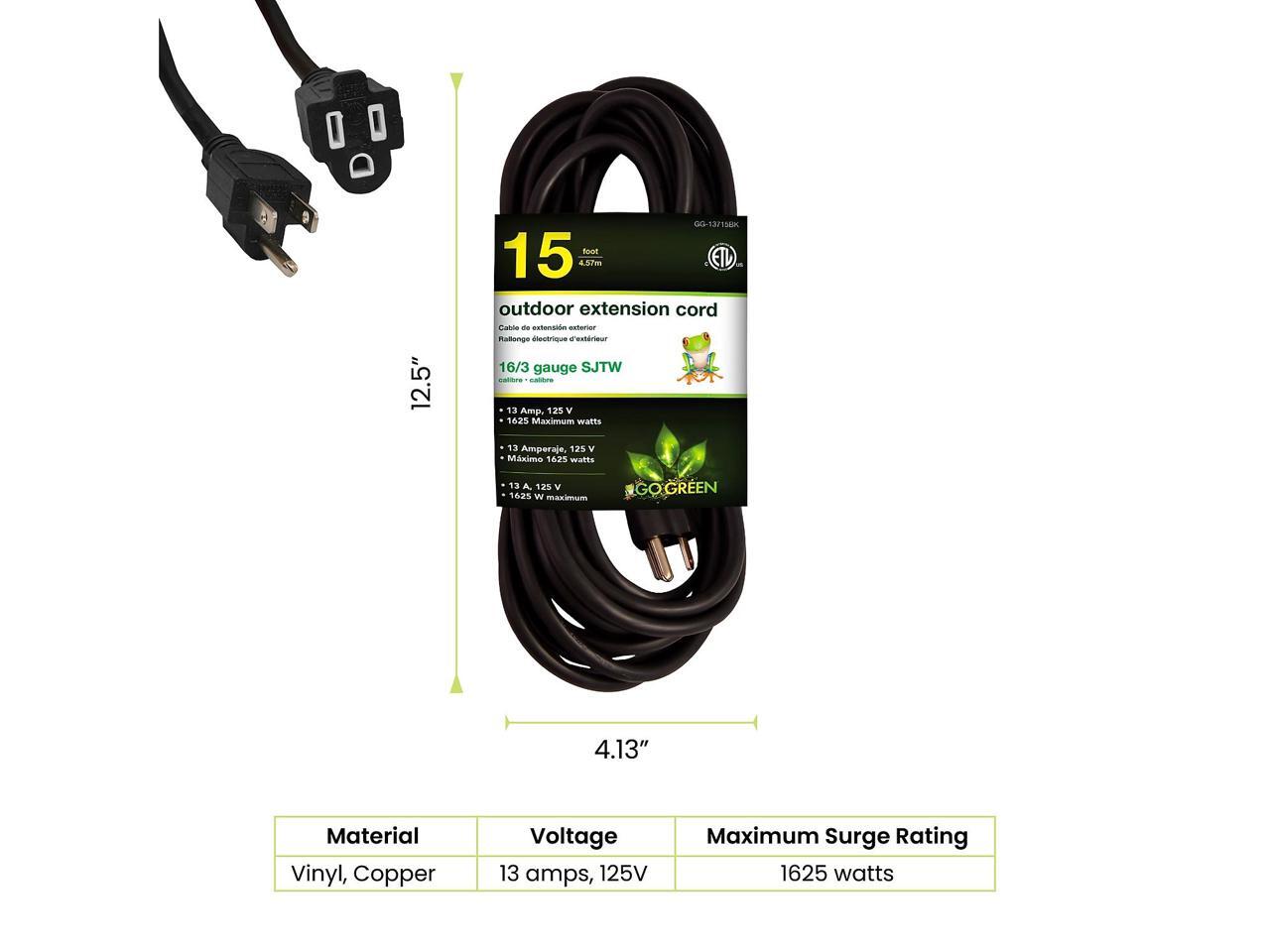 Go Green Power 15' Indoor/Outdoor Extension Cord 16 AWG Black (GG-13715BK)