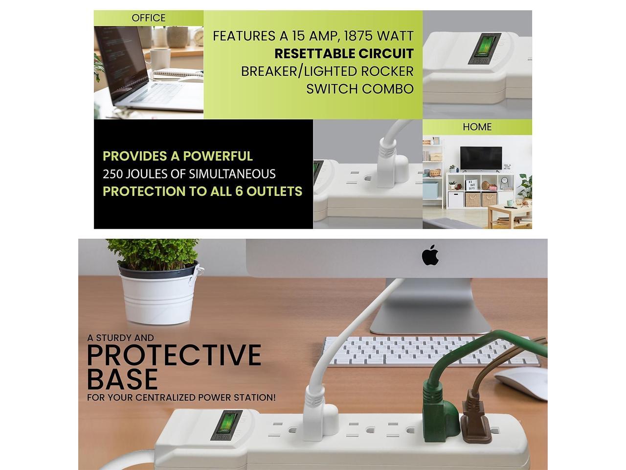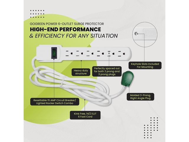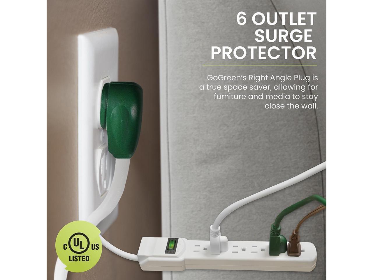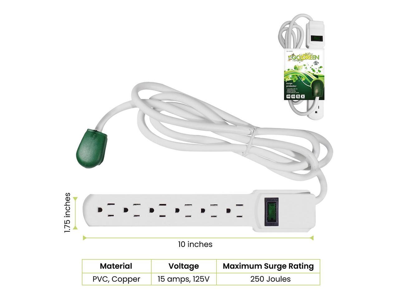 GoGreen Power 6 Outlet Surge Protector 6' Cord White (GG-16106MS)