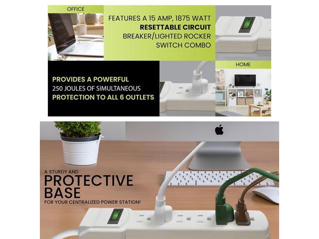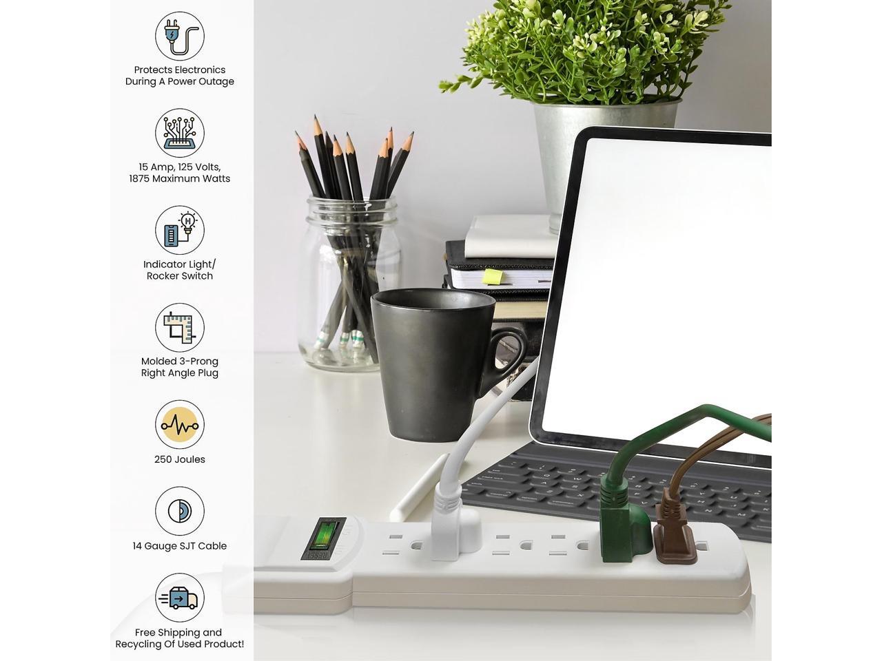 Protects electronics during a power outage. 6-foot cord.