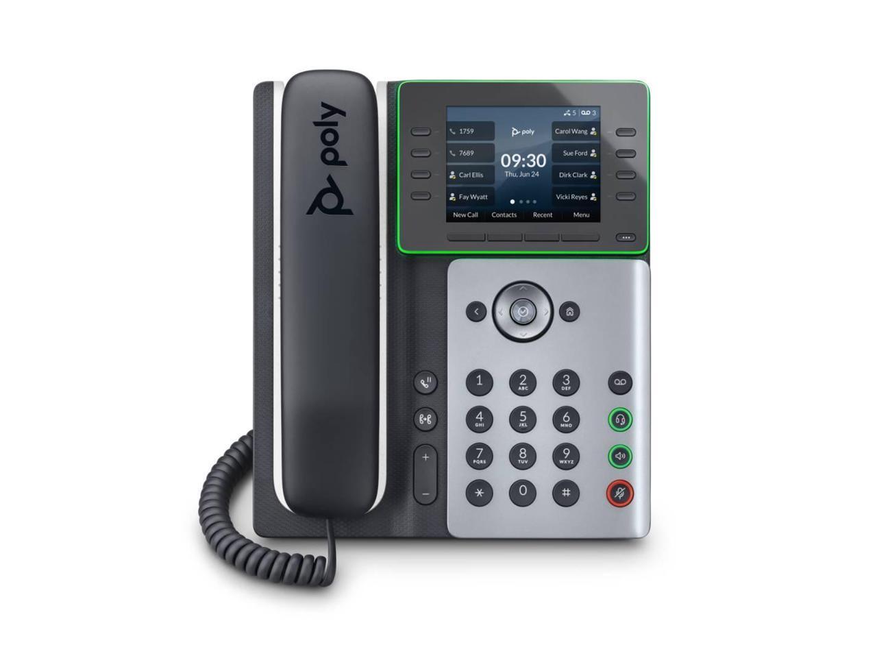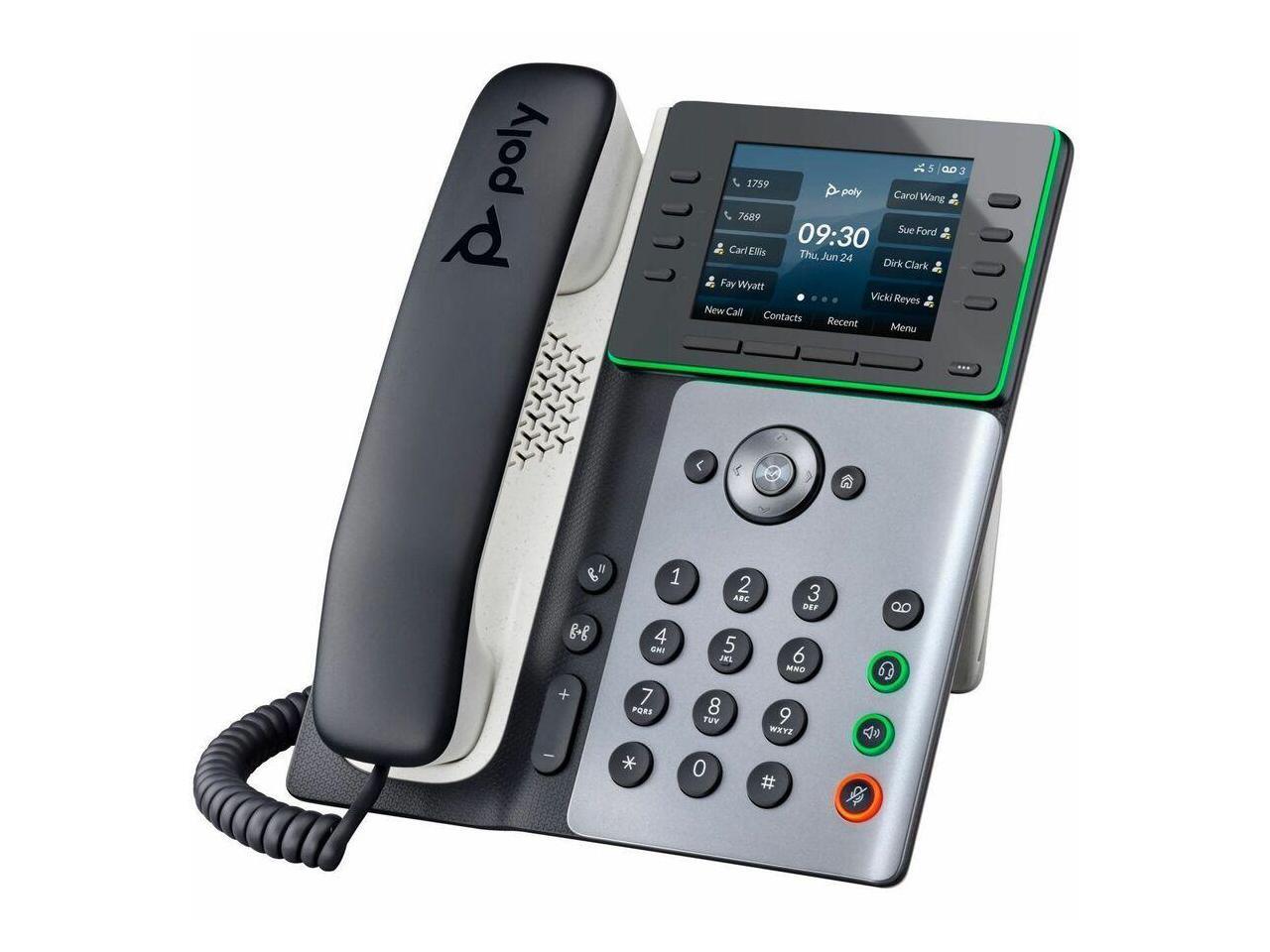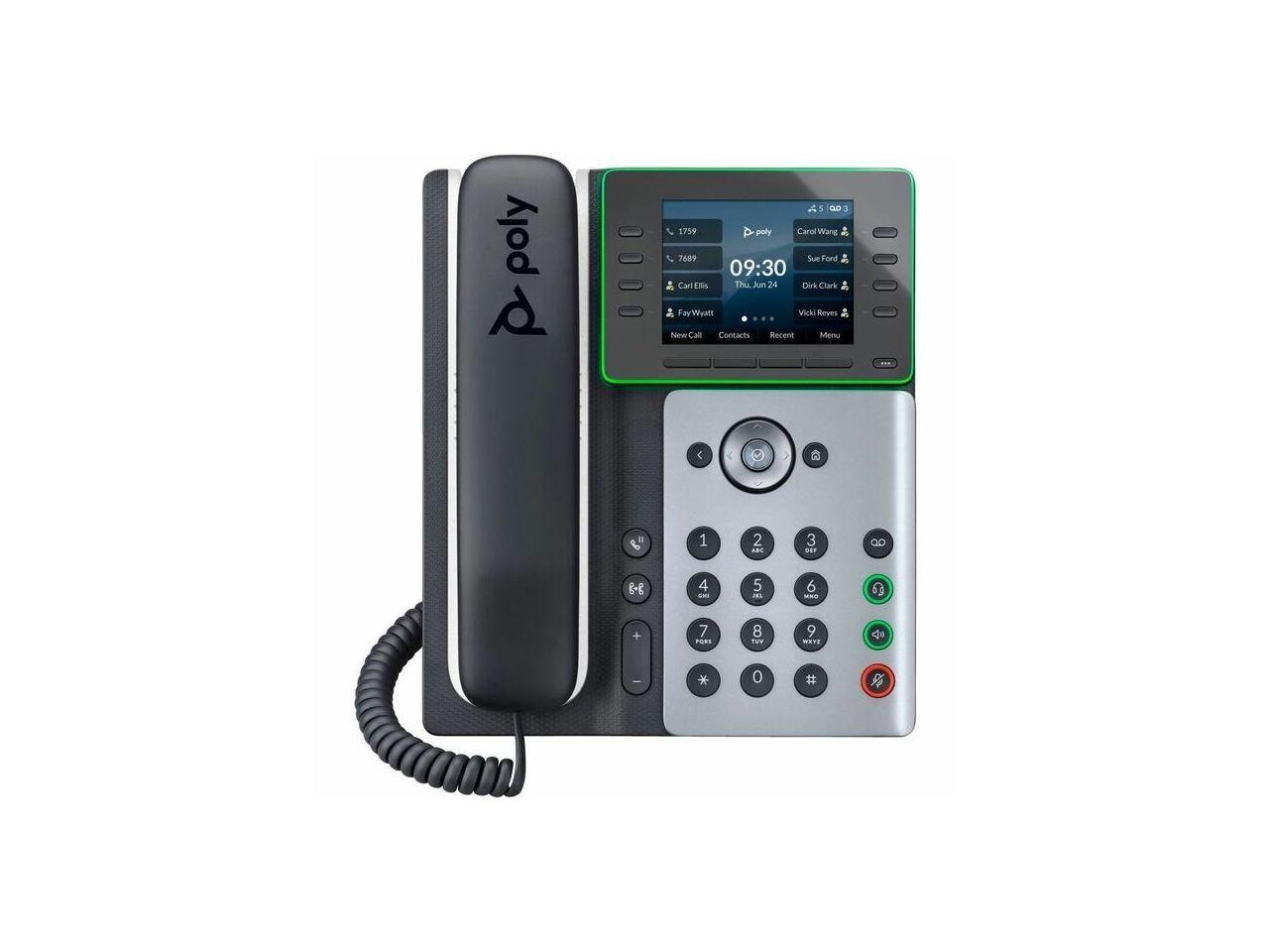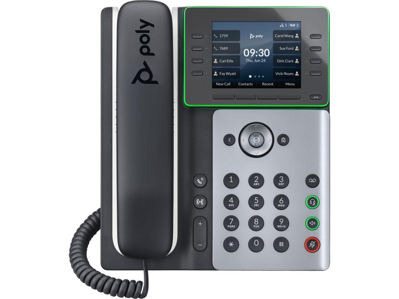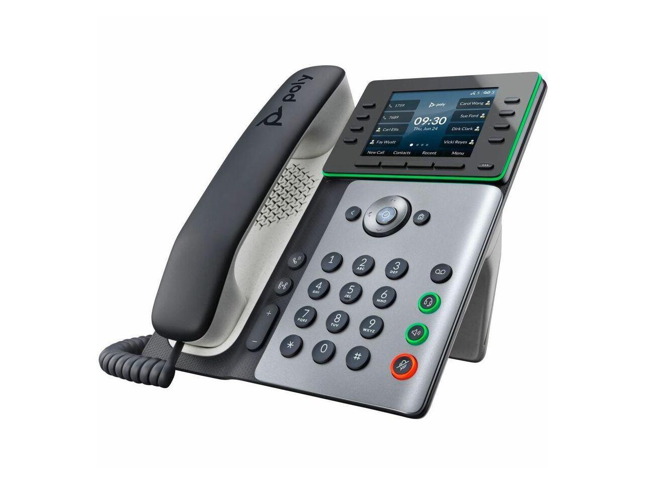 HP Poly Edge E300 IP Phone Corded Desktop Wall Mountable Black VoIP 2x Network RJ-45 PoE Ports Model 82M92AA