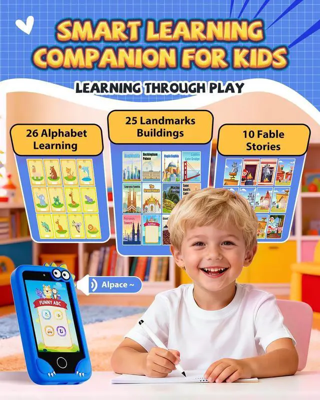 [3.97" Eye-Friendly Touchscreen for Little Learners]: Boasts a 3.97" smooth touchscreen that minimizes eye strain, giving boys a comfortable viewing experience. Dive into three super fun educational modules: 26 Alphabet Learning , 25 Landmarks Buildings (great for little explorers curious about the world), and 10 exciting audio fables. It effectively builds early language skills, sparks curiosity about different cultures, and enhances listening comprehension.