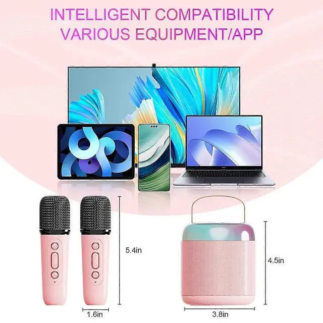 **2 Wireless Microphones**: Sing duets or group performances without tangled cords, featuring magic sound effects for added fun.