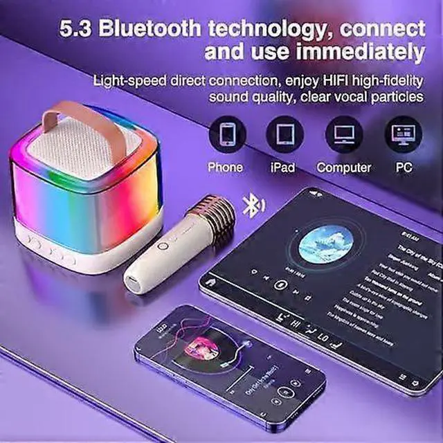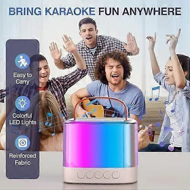Transform any gathering into a fun-filled karaoke party with this portable Bluetooth speaker and karaoke machine. Perfect for kids and adults, it features dual wireless microphones and vibrant LED lights to create an immersive experience.