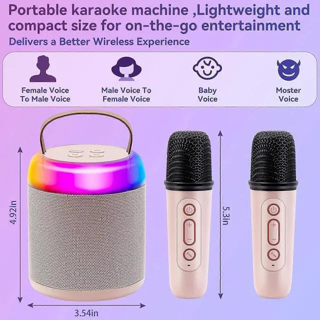 - Includes 2 wireless microphones for duet fun and multiple sound effects (KTV, professional, magic modes)
