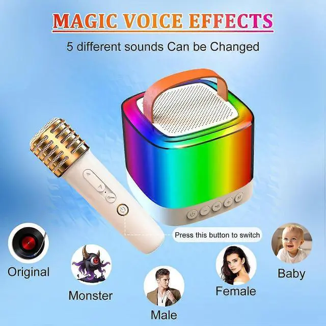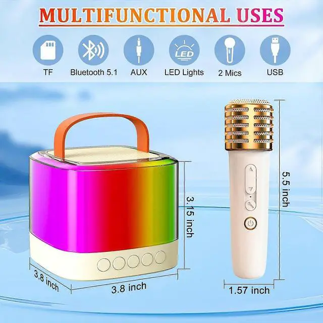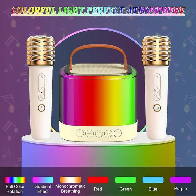 \n Dazzling Light Show: Features 7 modes of atmosphere lights that dance to music, creating an immersive karaoke experience with 5 sound modes on mics.