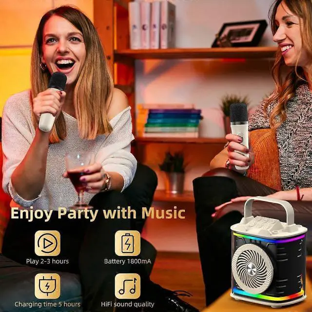 Transform any space into a karaoke party with this all-in-one portable speaker and microphone set! Perfect for kids, adults, families, and parties, it delivers powerful sound and fun features in a compact design.
