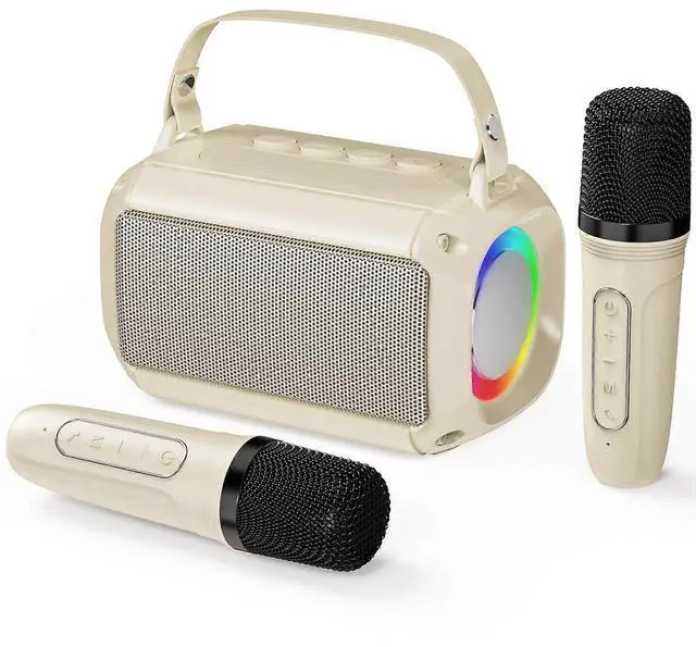 All-in-One Karaoke & Speaker: Combines karaoke machine, portable speaker, music player, and LED party lights in one compact device for versatile entertainment.