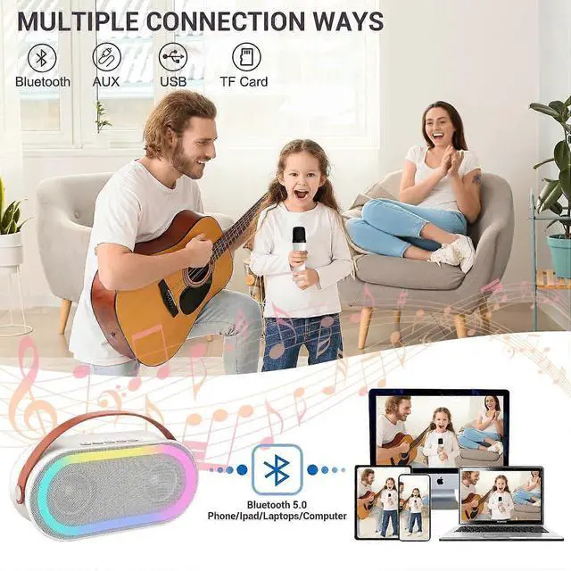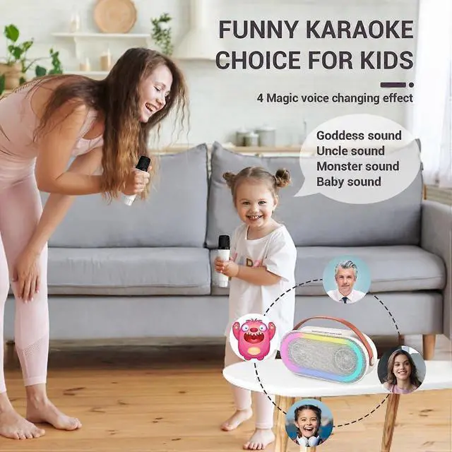 Transform any space into a fun karaoke party with this portable Bluetooth speaker and karaoke machine! Perfect for kids aged 4-12, it includes two wireless microphones and vibrant LED lights for an immersive experience.