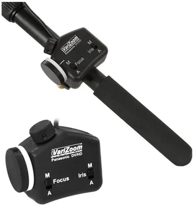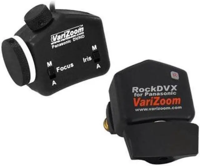 The VariZoom VZ-SROCK-ZFI Focus & Iris Lens Control Kit combines the remote zoom rocker of the Rock-DVX with the focus and iris controls of the VZ-PFI, giving you a finer degree of control over your Panasonic camcorder. Utilizing the dual ports on HVX, HMC, HPX & DVX cameras, these two devices attach to your tripod handle and bring precision, range and variable speed to your camerawork, for a broadcast-like feel.