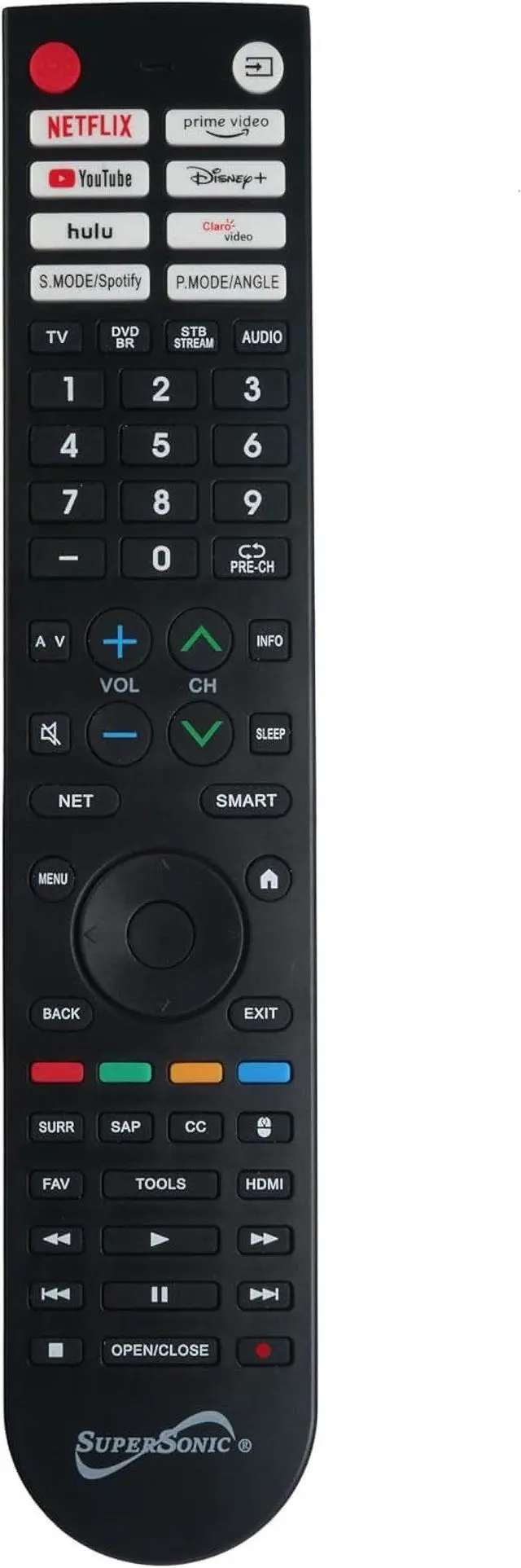 Supersonic SC-326 Universal Remote Control for Smart TV with HotKeys for Streaming, Controls 4 Devices, 10 Programmable Favorite Channels, DVD Player Functions & Navigation, Volume & Channel Control