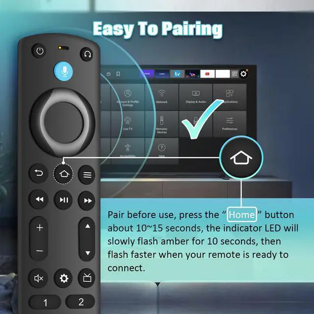 Press the Home button about 10-15 seconds until the LED indicator starts to rapidly flash, then waiting about 30-60 seconds (Entering Pairing mode, LED Flash), then your remote will automatically pair with your device.