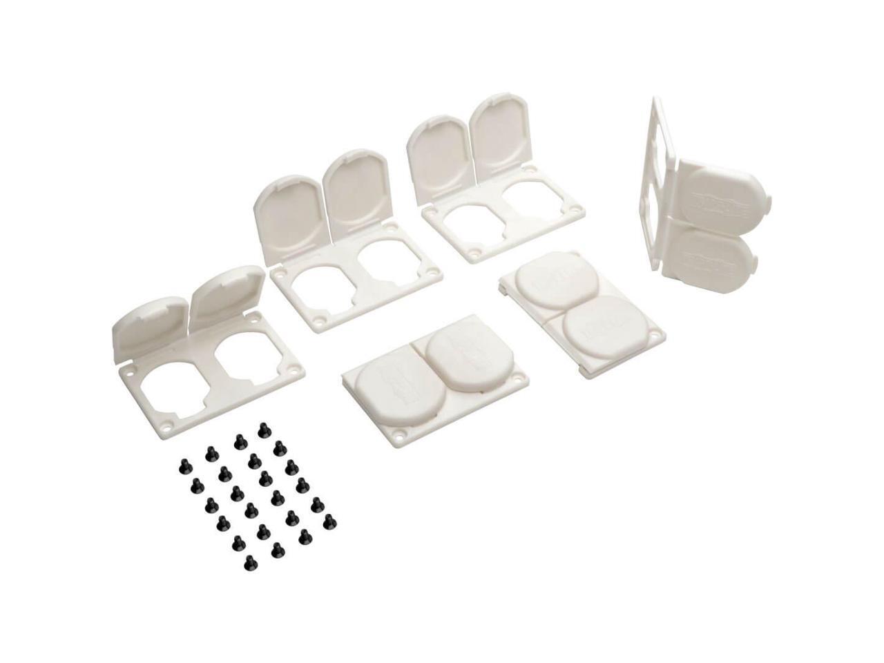 Set includes 6 duplex outlet covers (12 outlets) and installation hardware