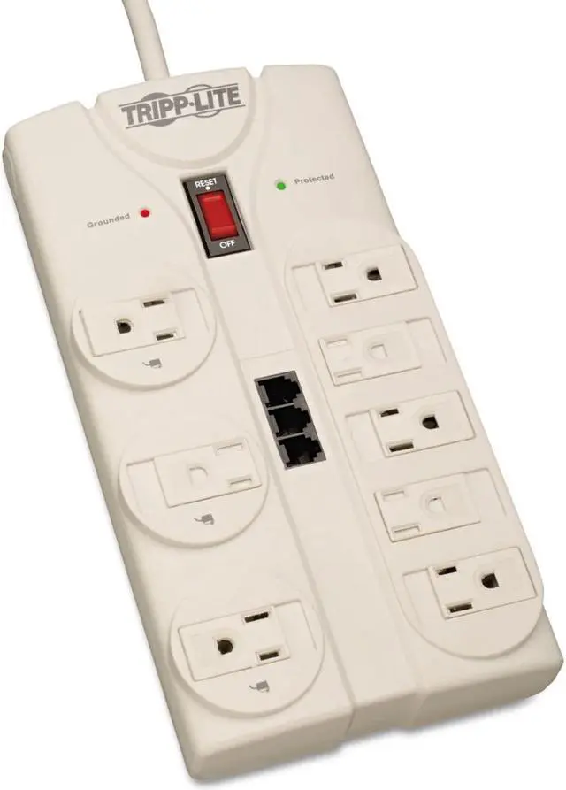 Ideal for computers and other sensitive electronics, this suppressor shields equipment from surges and line noise. Three of the outlets are wide enough to accommodate transformer plugs without blocking other outlets. Diagnostic LED confirms outlet grounding and surge suppression status. Integrated outlet covers safely seal off unused outlets.