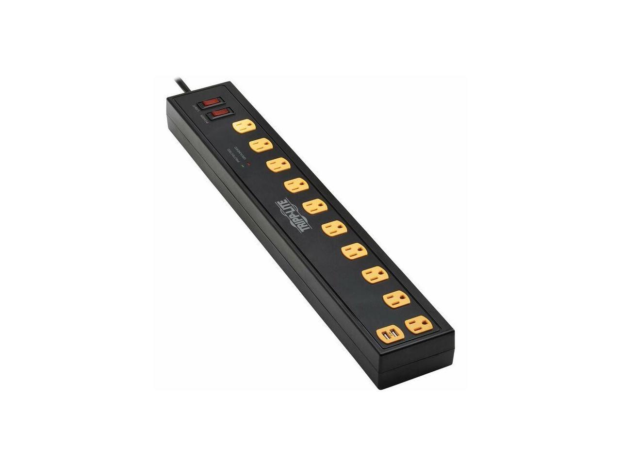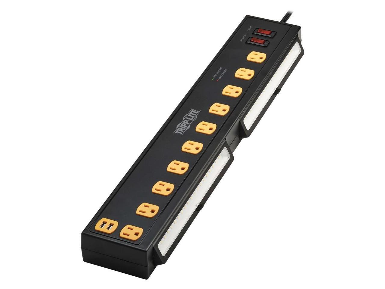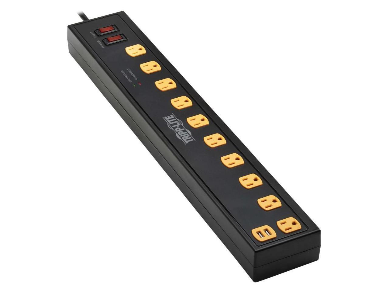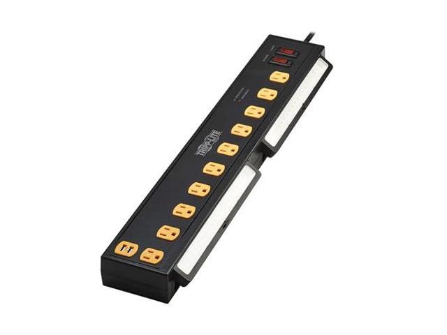 Tripp Lite Protect It! 10-Outlet Surge Protector with Swivel Light Bars - 5-15R Outlets, 2 USB Ports, 6 ft. (1.8 m) Cord, 1350 Joules, Black - TLP1006USB