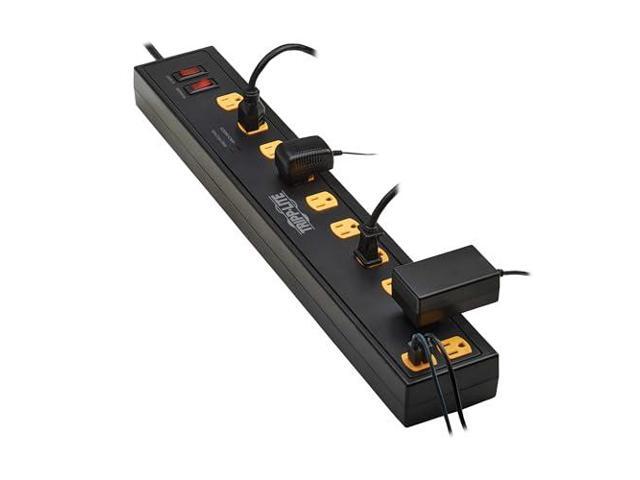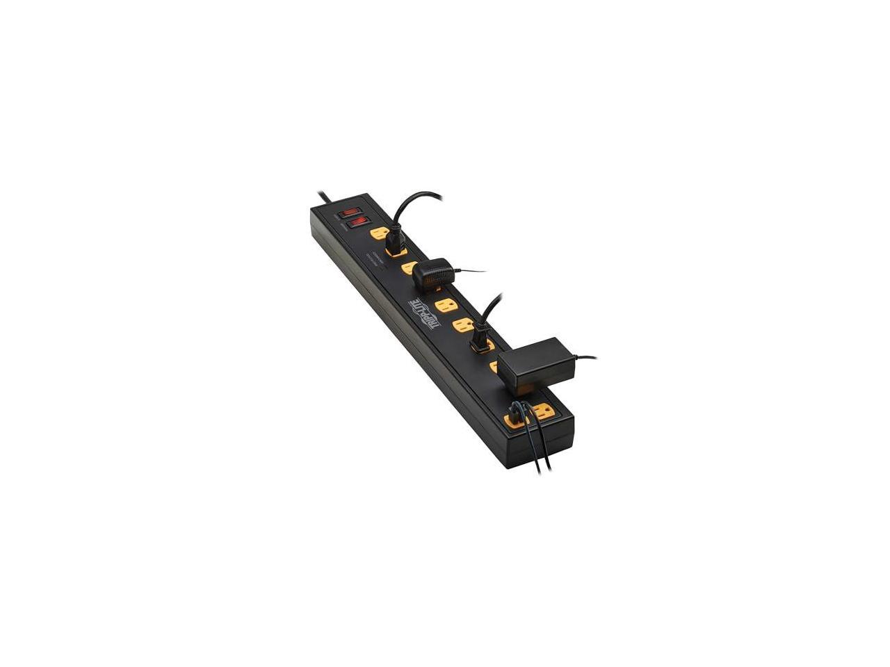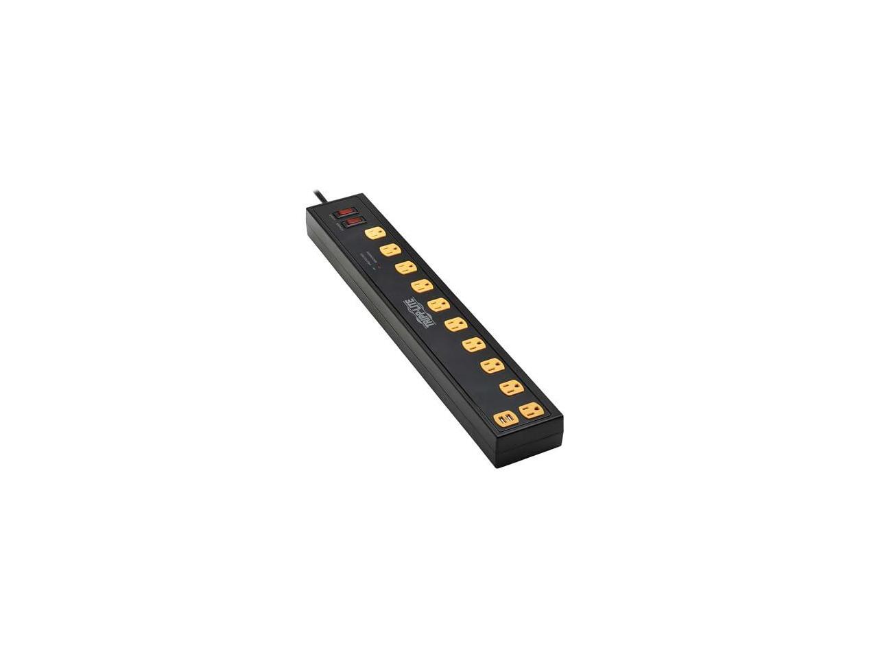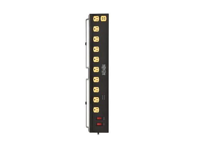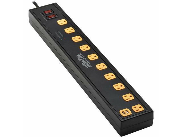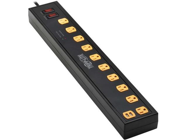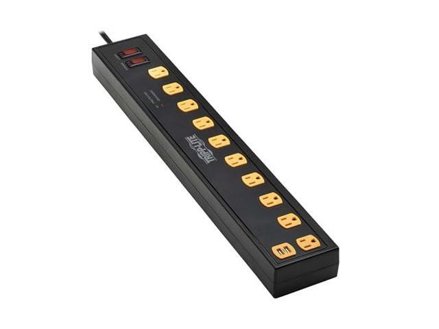 Tripp Lite Protect It! 10-Outlet Surge Protector with Swivel Light Bars - 5-15R Outlets, 2 USB Ports, 6 ft. (1.8 m) Cord, 1350 Joules, Black - TLP1006USB