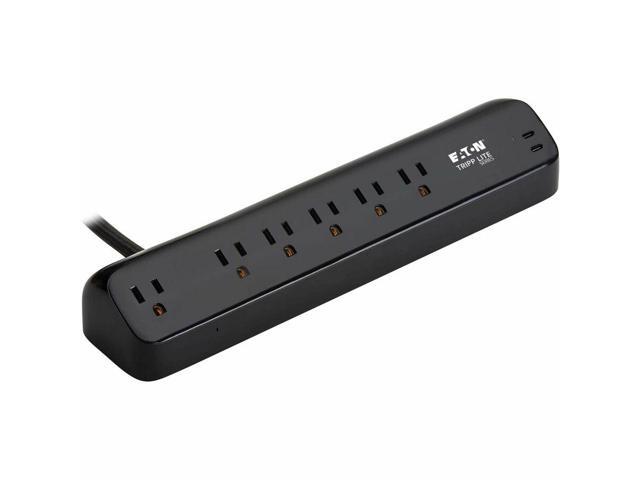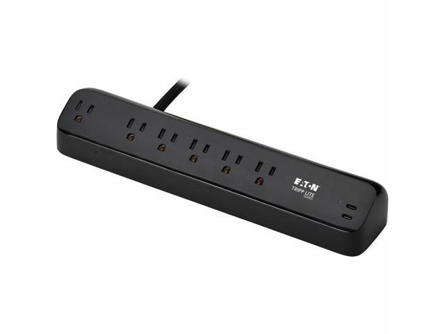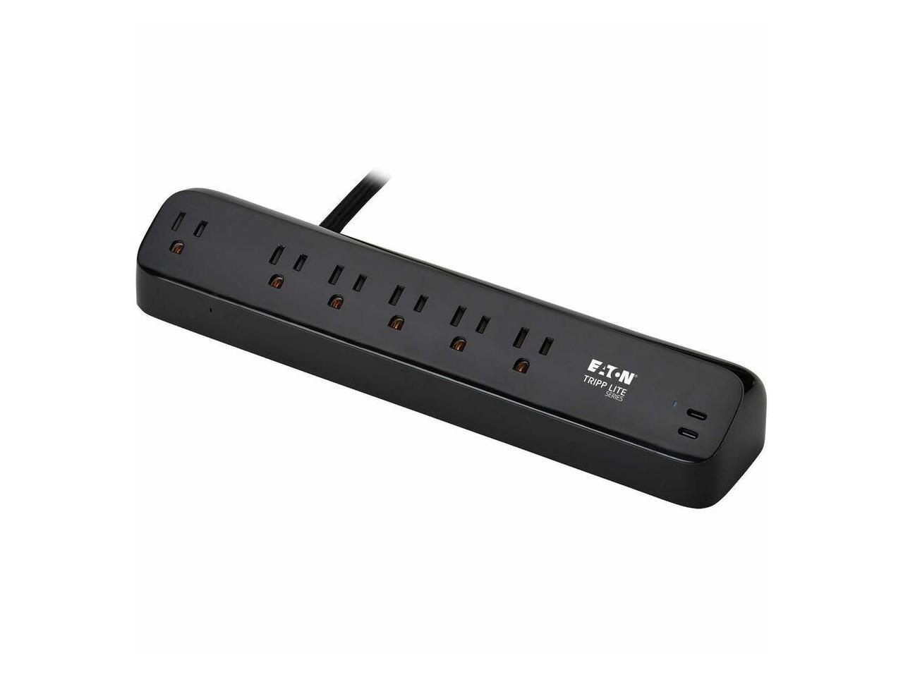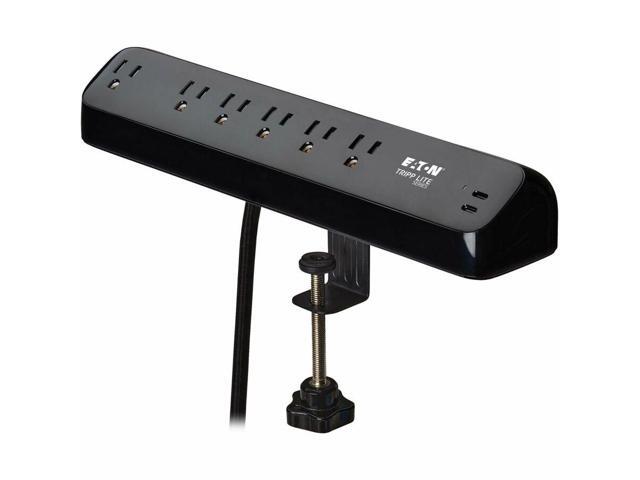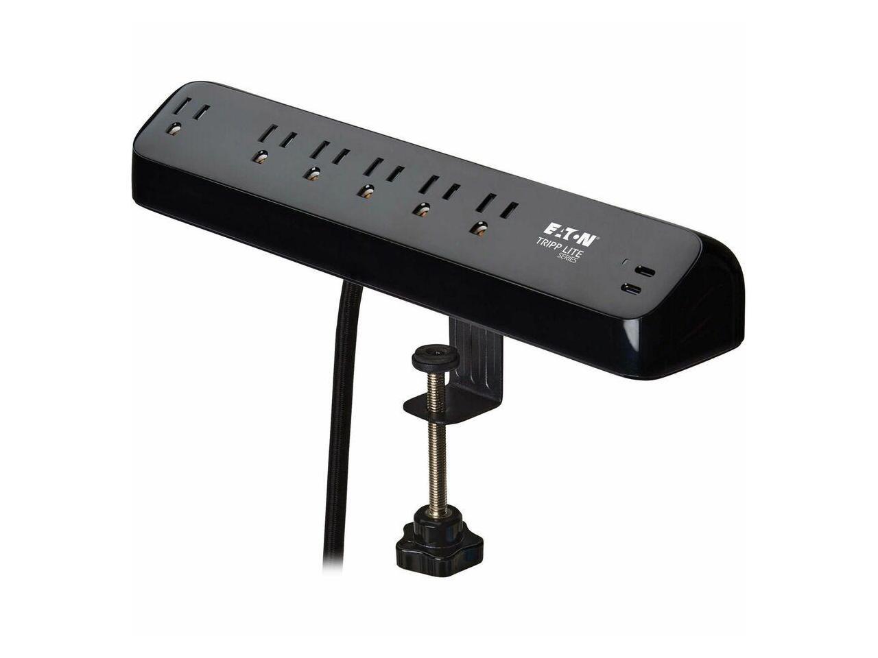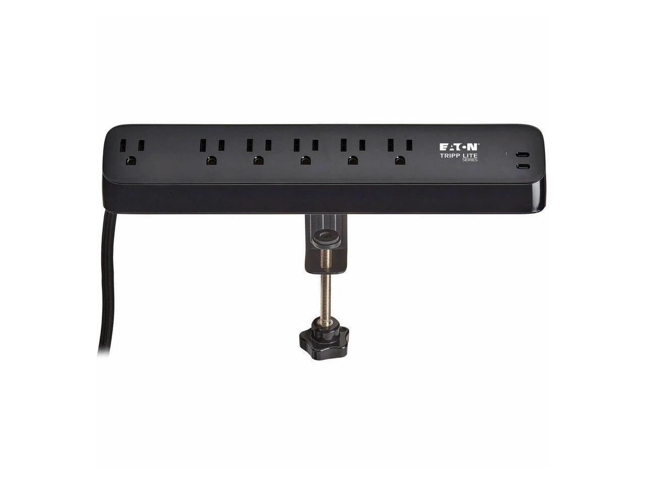 Eaton Tripp Lite Series Protect It! 6-Outlet Surge Protector with 2 USB-C Ports - 5-15R Outlets, 900 Joules, 30W PD Charging, Desk Clamp, 10 ft. (3 m) Braided Cord, Black - Black - NEMA 5-15P - 2 x US