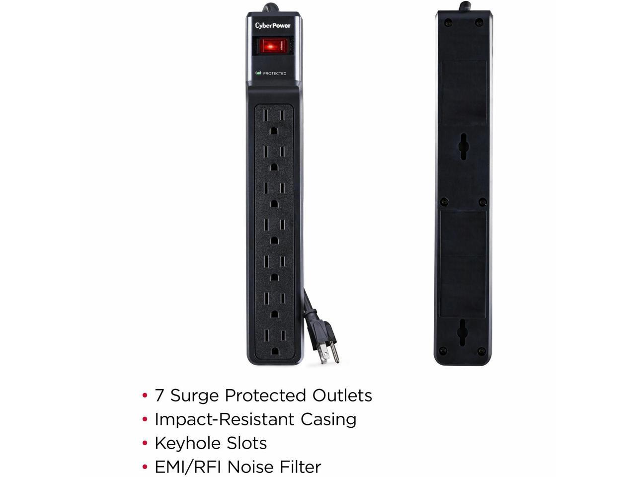 CyberPower Systems USA CSB7012 CyberPower CSB7012 Essential 7-Outlets Surge Suppressor with 1500 Joules and 12FT Cord - 7 x NEMA 5-15R - 1500 J - 125 V AC Input