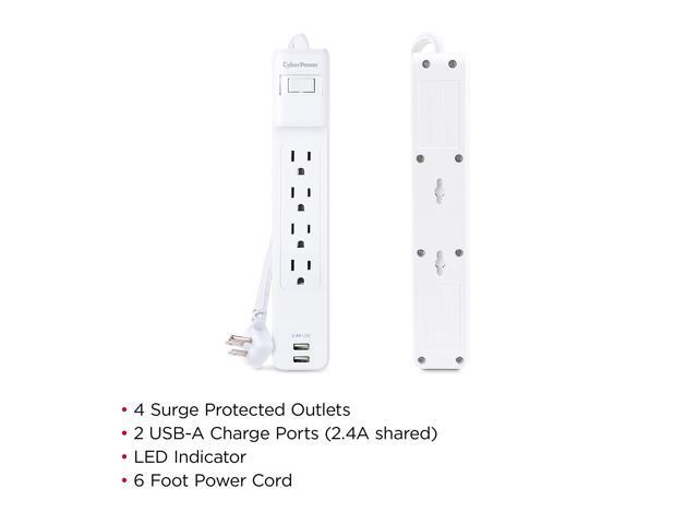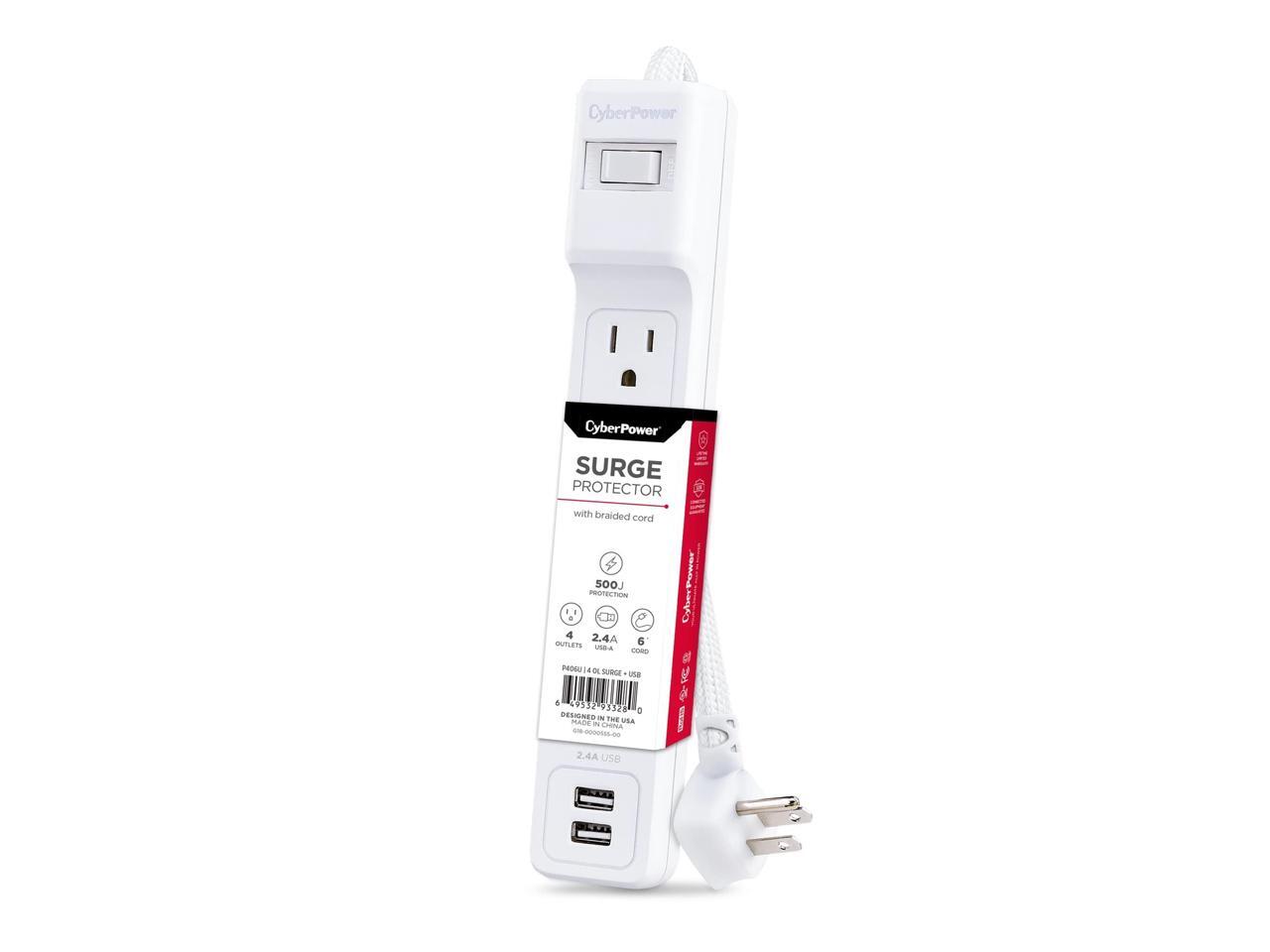 CyberPower P406U Home Office 4 Outlet Surge Protector with 500 J Surge Suppression