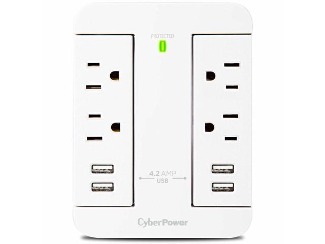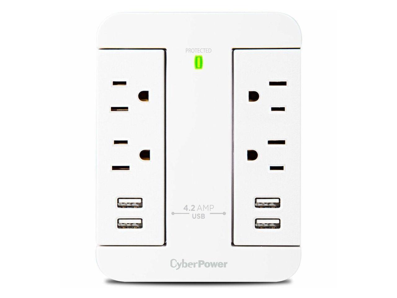 CyberPower GP400U4AWH Direct Plug Swivel Wall Tap, 4 Outlets, 4 USB Ports