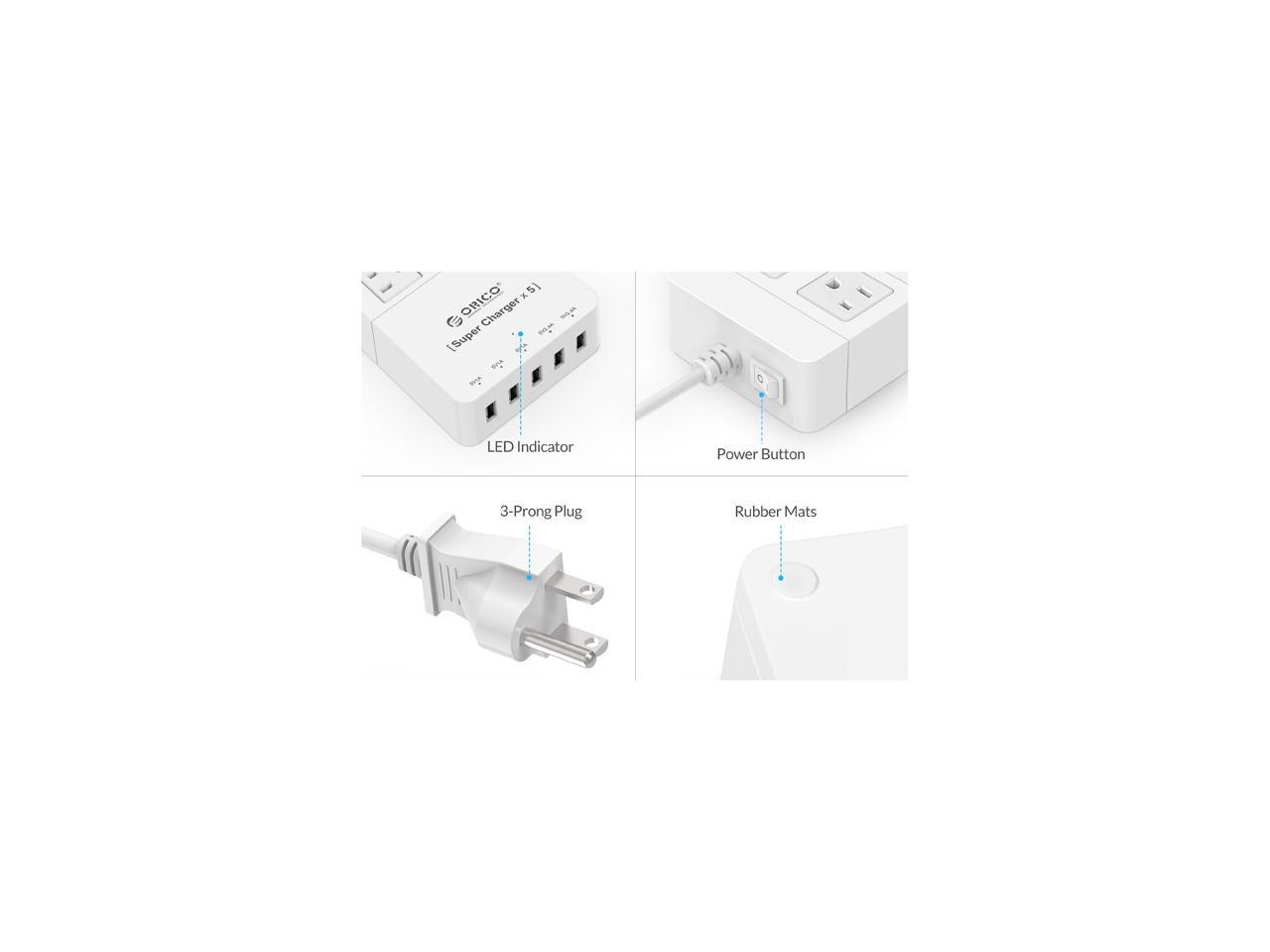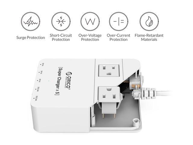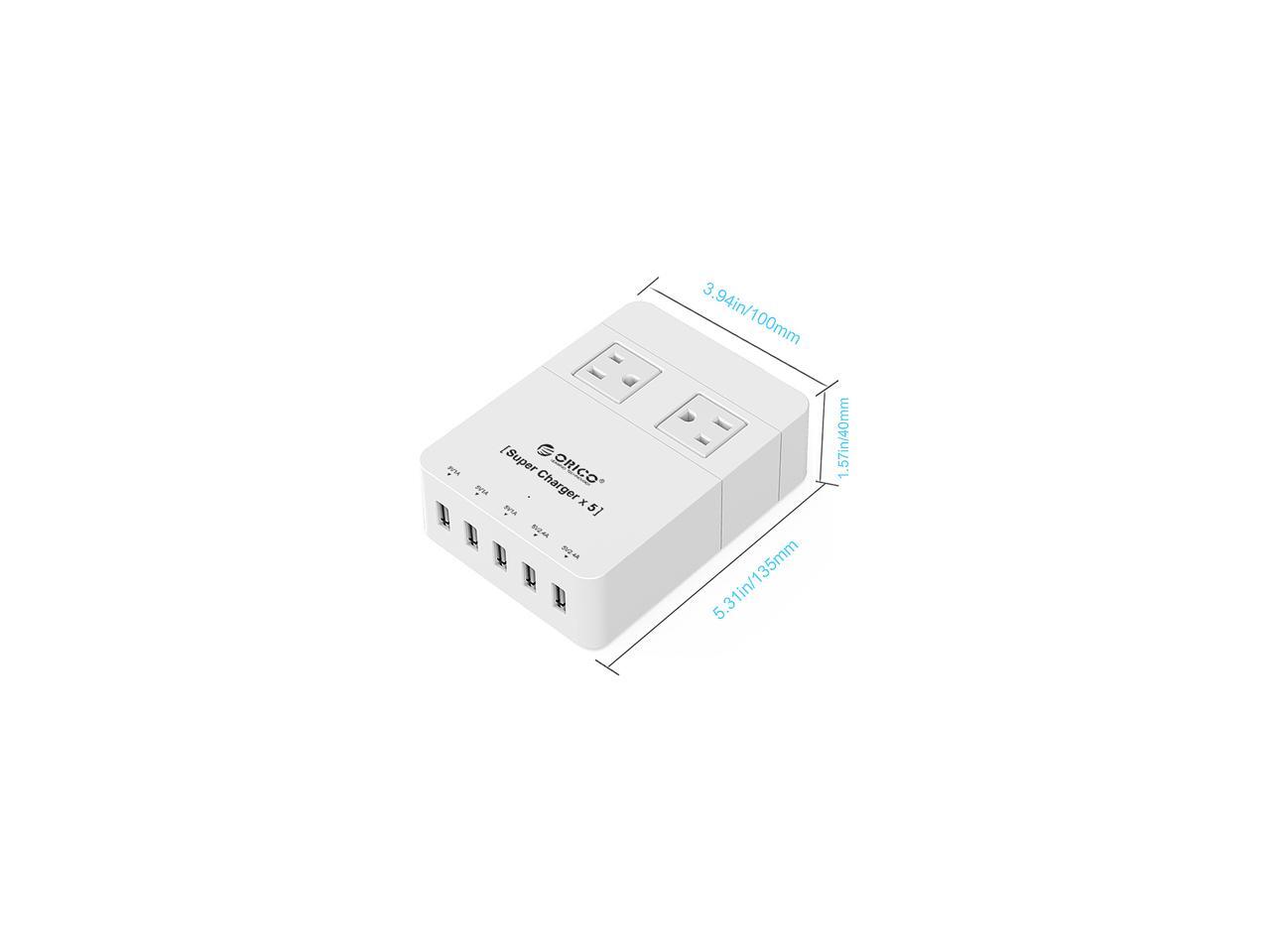 ORICO 2 Outlet Power Strip with 5 USB Charging Ports 5 ft. for iPhone / iPad / LG / Samsung / HTC and More SurgeArrest Home / Office - White (HPC-2A5U)