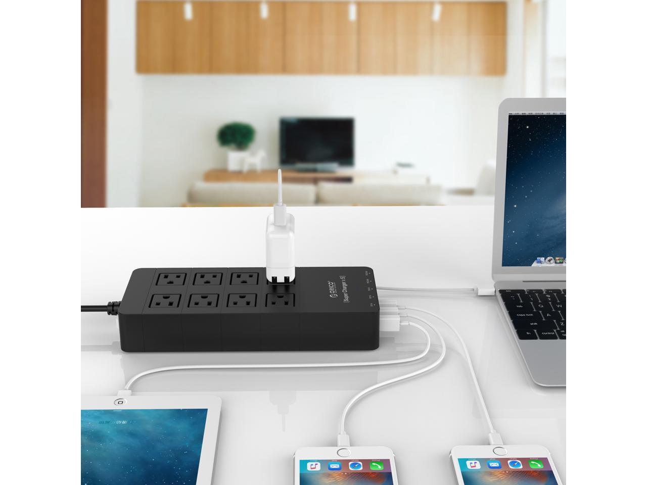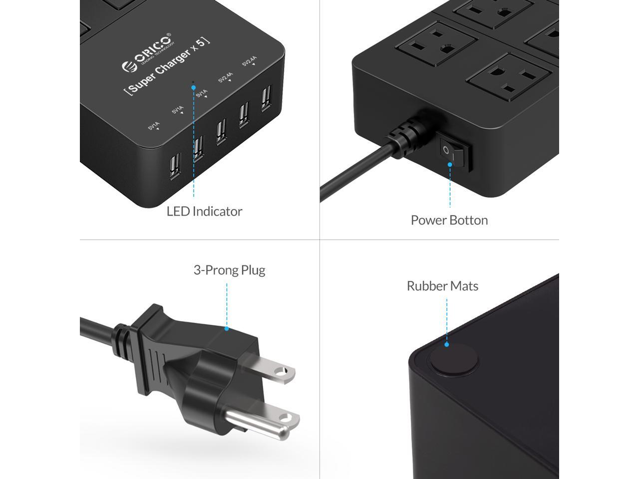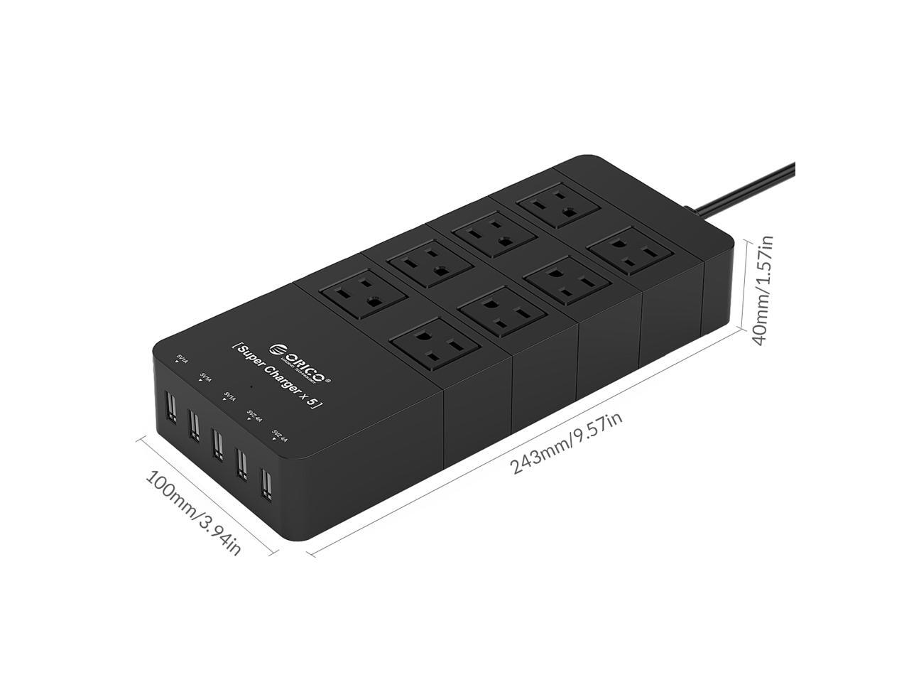ORICO 8 Outlet Power Strip with Surge Protector, Built-in 5 Ft. Cord, 5 USB Intelligence Charging Ports for iPhone 7/7Puls/6S/6S P , iPad, Samsung Galaxy S6 /S6 Edge, Nexus and More - Black (HPC-8A5U)