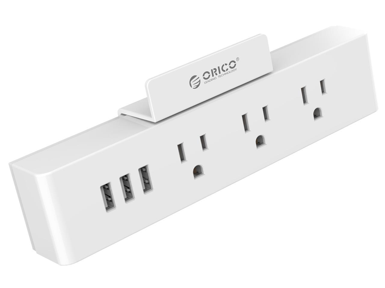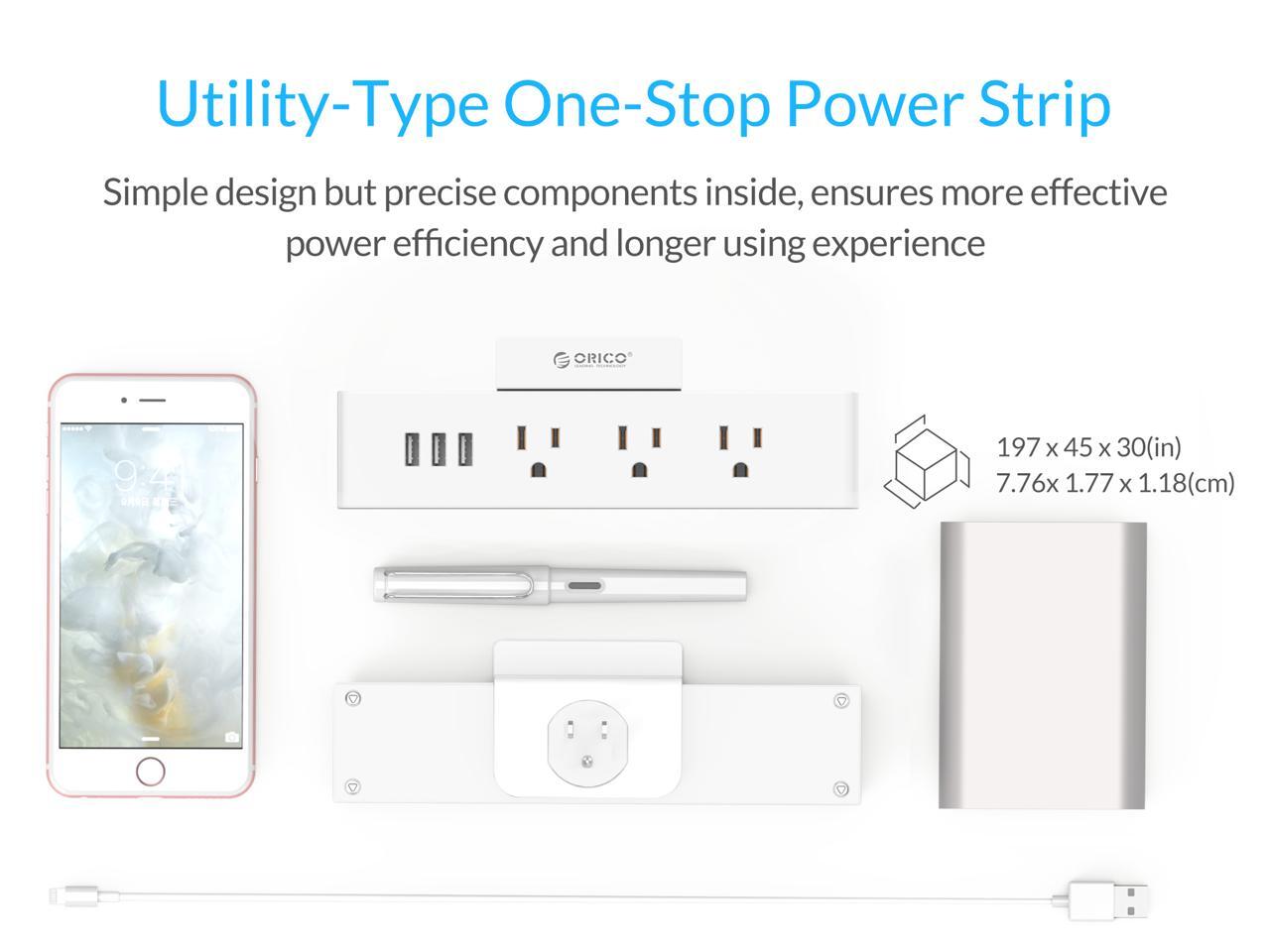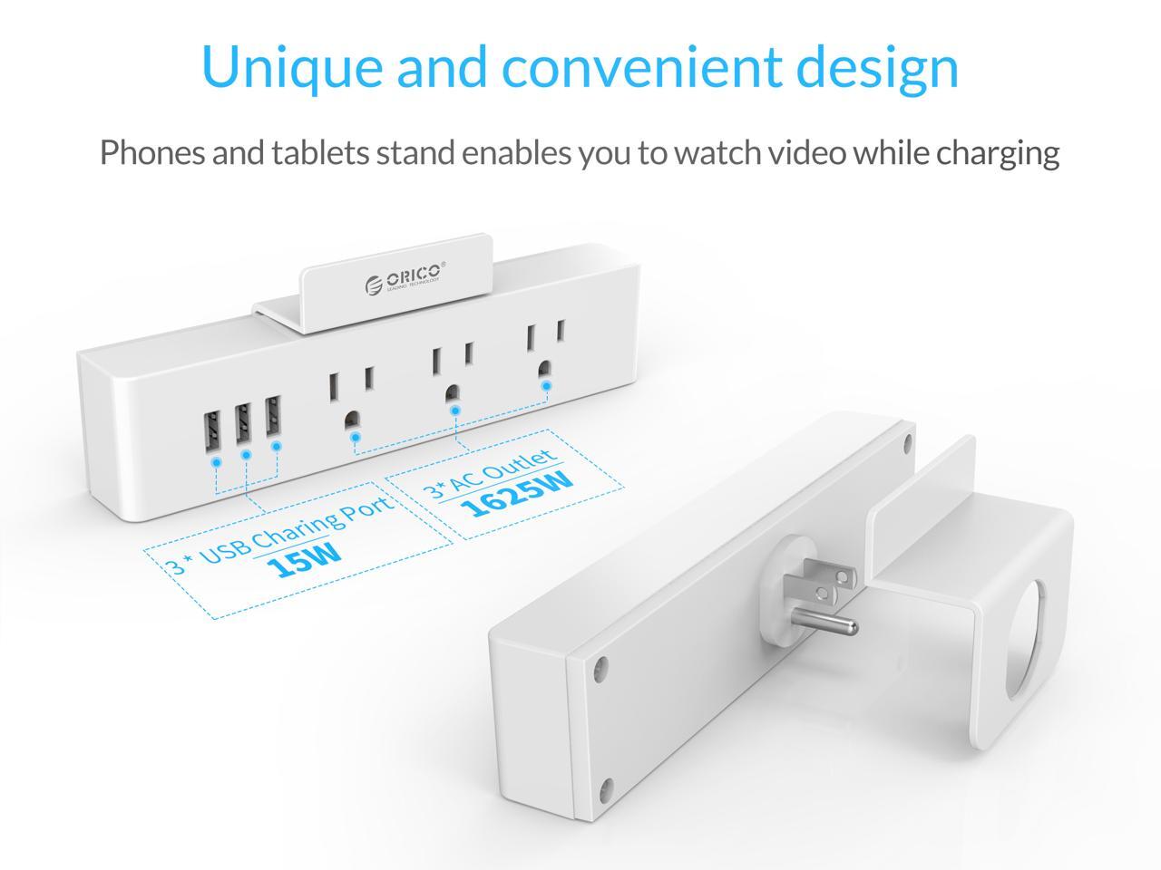 ORICO Wall Mount 3 Outlets Power Strip 3 USB Charging Ports with Phone Holder Stand 5-foot Heavy Duty Extension Cord for Home, Office, Travel and Business -White