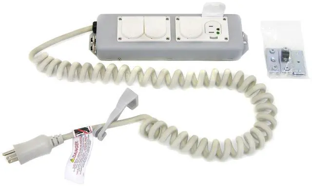 Medical-grade receptacle and plug enhance safety and reliability. Certified and approved for use in patient vicinity and in a variety of healthcare settings, including offices, imaging centers, laboratories and more. Coiled cord stretches and collapses quickly; resists tangling. Easy to clean and durable aluminum housing. Medical-grade receptacles and plug enhance safety and promote reliability.