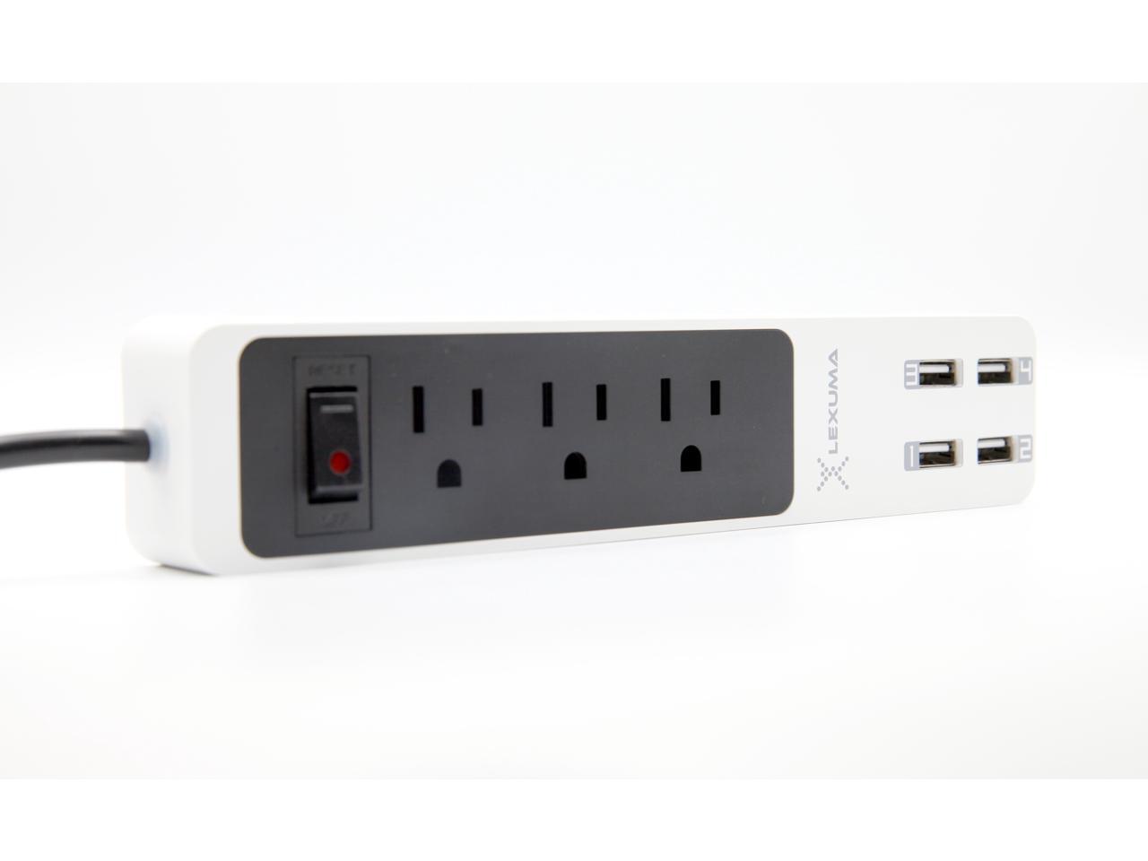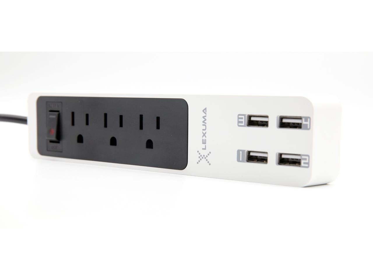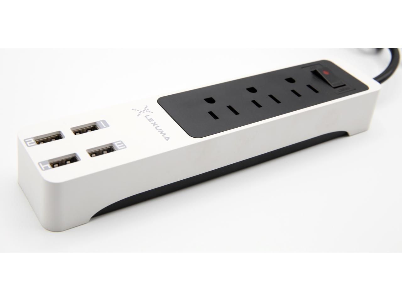 Lexuma XSTRIP XPS-SB1340 Bar Type Power Strip with 4 USB charging ports (5V/6A) , 3-gangs US socket, 3.9 feet cord, master on/off switch (Black and White)