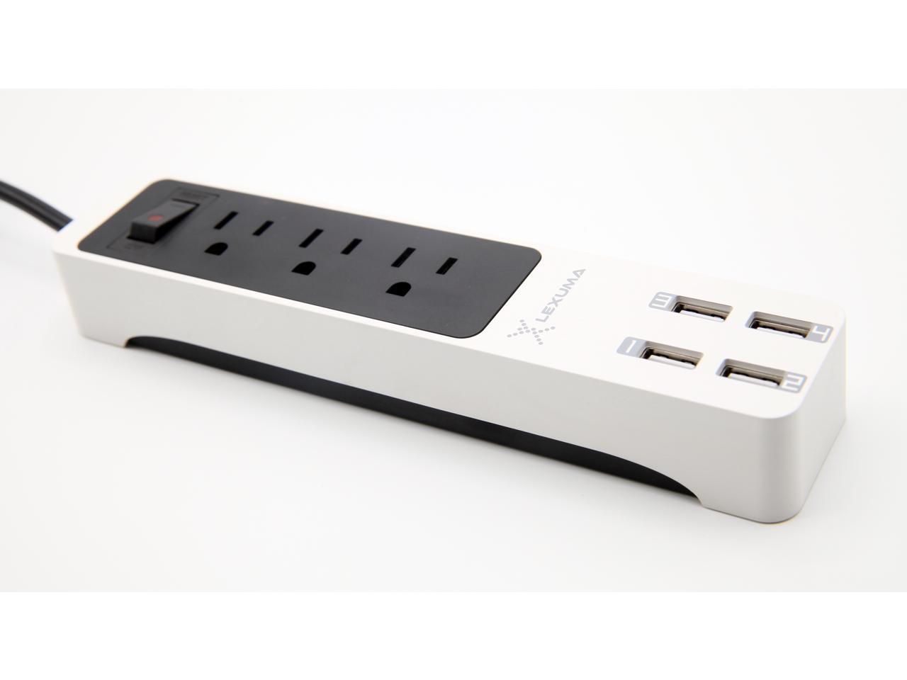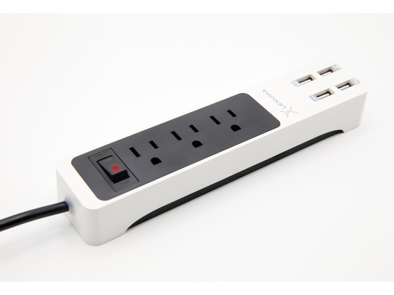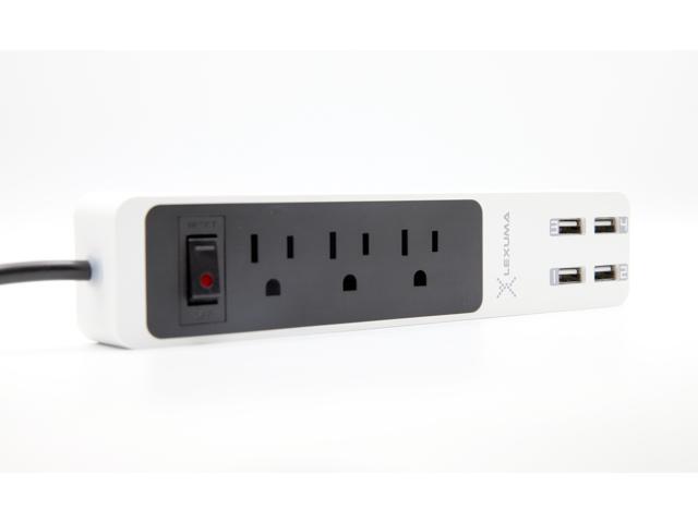 Lexuma XSTRIP XPS-SB1340 Bar Type Power Strip with 4 USB charging ports (5V/6A) , 3-gangs US socket, 3.9 feet cord, master on/off switch (Black and White)