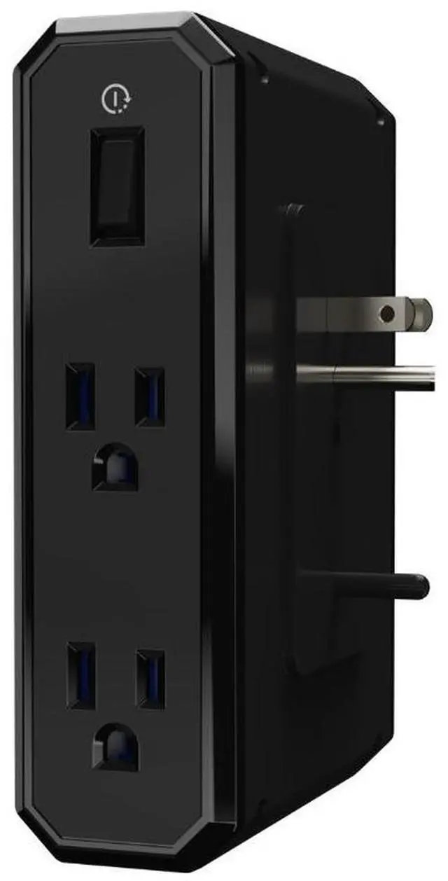 Austere 3S-PS4-US2 Power Outlet - Slim Space Saving - Premium Surge Protection - 4 Side-Mounted AC Outlet Power - 2500-Joule Protection - Type I PureFiltration - Flameless MOV Protection - 2 OmniPort Rapid-Charging USB Ports - 1 USB-A - 1 USB-C - 2.4 Amp Charging Power - Wall-Mountable - Lifetime Warranty - ( 5.8"W x 4.125"H x 2.5"D ) - (Graphite Gray)