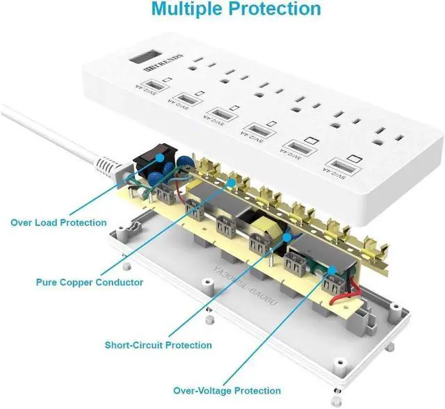 MULTIPLE PROTECTION: All charging ports of the electric strip comes with high-current, over-load and short-circuit protection for 100% safe charging.