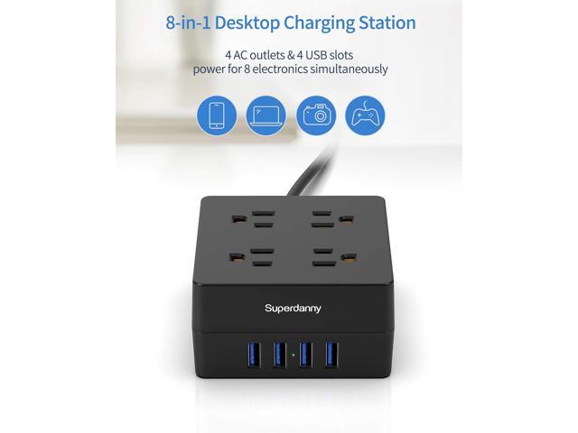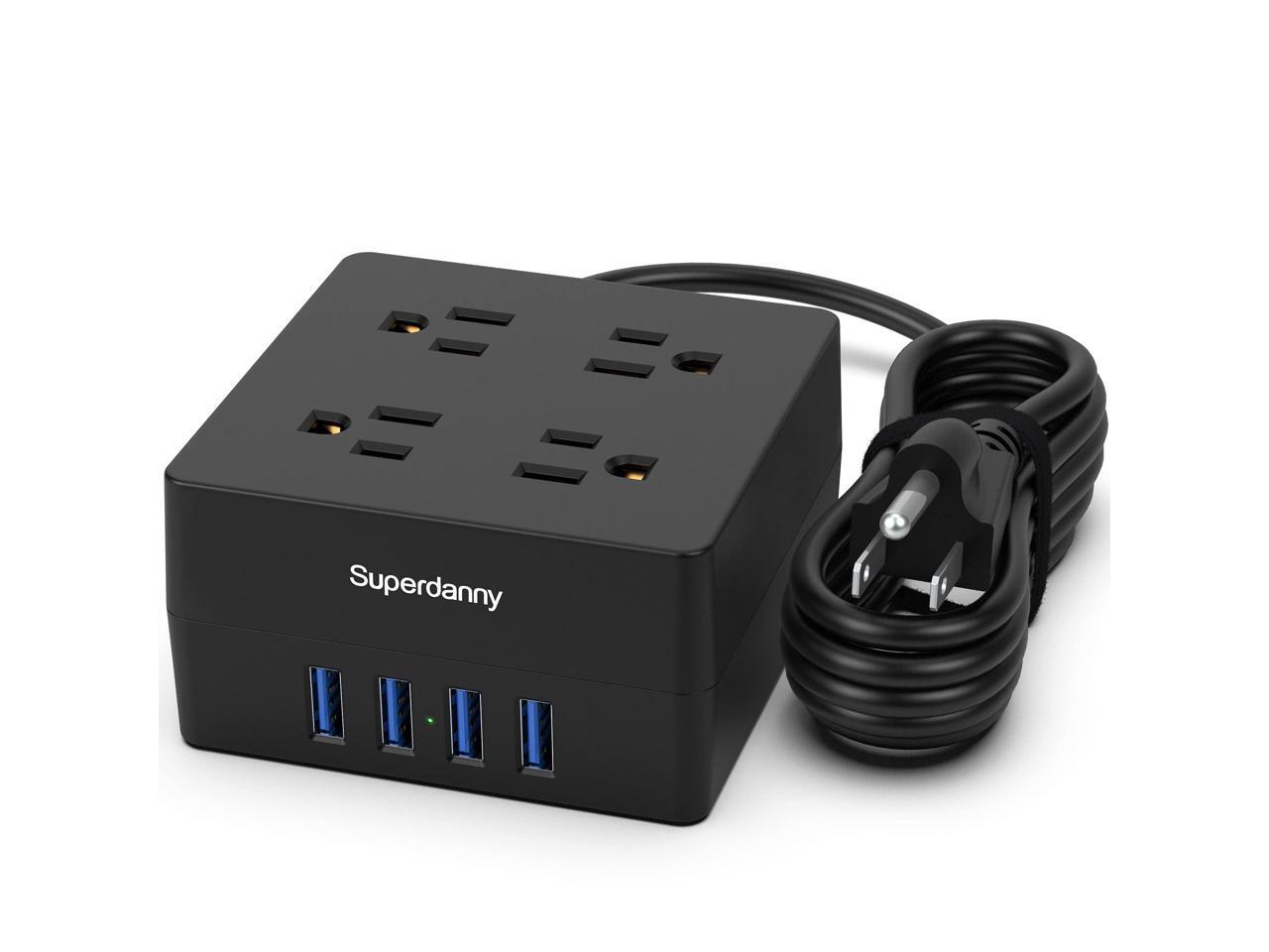 Power Strip Surge Protector - SUPERDANNY 5 Ft Extension Cord with 4 Outlets & 4 USBs, 900 Joules, Overload Switch, Grounded, Mountable, Desktop Charging Station for Home, Office, for iPhone 15 Black