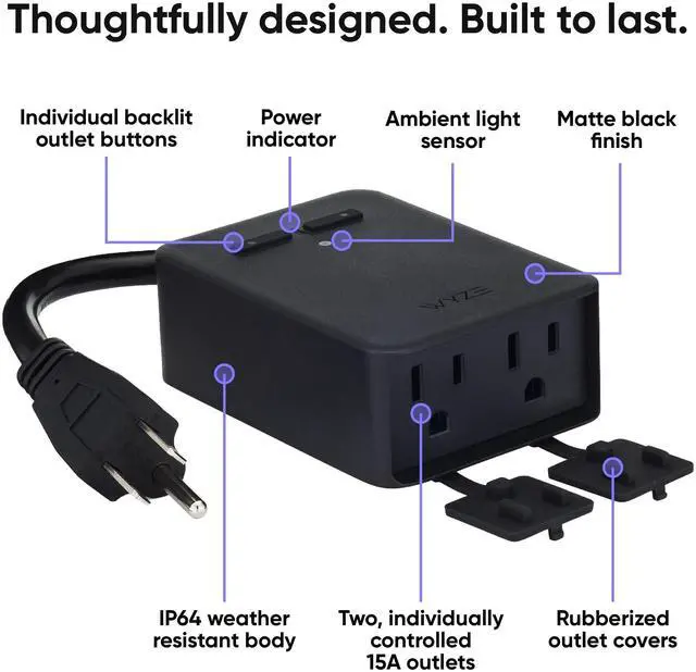 Independent control of both outlets at any given time: Two Outlets in One. Turn off your outdoor lights but leave your inflatable snowman standing strong.