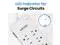 The 6' cord with a right-angle NEMA 5-15P plug ensures a clean, flush fit against the wall, keeping unsightly cords out of sight and maintaining access to nearby outlets. LED indicators let you quickly check the surge protection status, while rear wall mounts offer a clutter-free solution for off-the-ground placement, making it easy to reach and manage your connections.