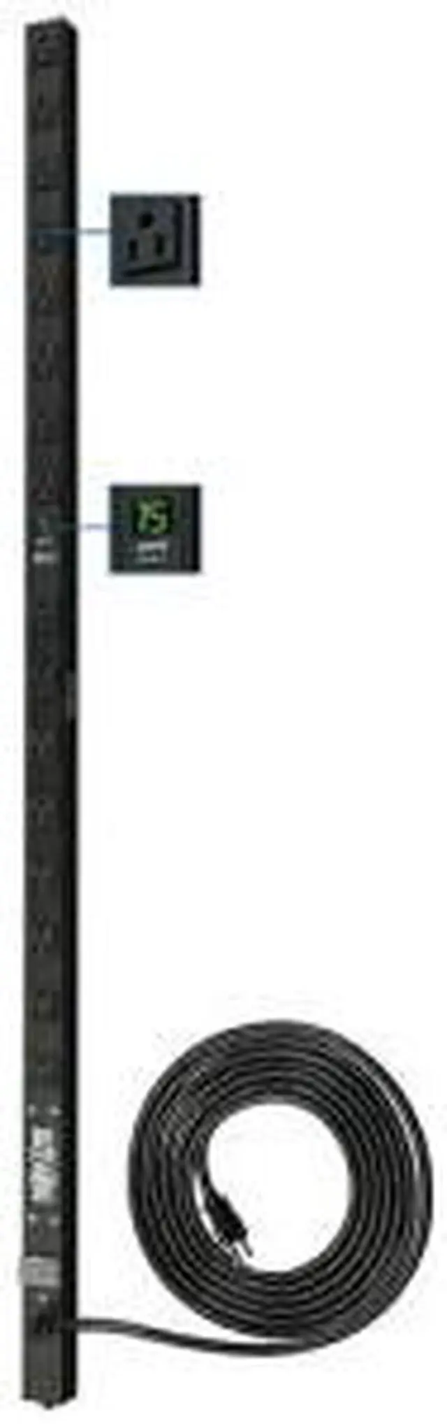 General Information Manufacturer/Supplier: Tripp Lite Manufacturer Part Number: PDUMV15 Brand Name: Tripp Lite Product Model: PDUMV15 Product Name: PDUMV15 PDU Metered 120V 15A 16 Outlet Marketing Information: Tripp Lite's PDUMV15 metered power distribution unit offers 15 amp, 120V multi-outlet AC power distribution in a convenient 48-inch mountable housing. Digital current meter displays the power consumption of connected equipment. Offers vertical power distribution in rackmount, raceway, and workbench applications. Includes 16 NEMA 5-15R output receptacles, 15 ft. AC line cord, and lighted power switch with locking transparent cover to prevent accidental shutoff. Sturdy all-metal extruded aluminum housing stands up to demanding network, laboratory, or factory enviroments. Unfiltered electrical pass-through makes the PDUMV15 ideal for distributing alternate waveform UPS or generator power in rack enclosures, network closets and more. Included 16 NEMA5-15R outlets, 15-ft. AC power cord with 5-15P plug, 15 amp circuit breaker in rugged metal case design.PLUG/OUTLETS-Input: NEMA 5-15P/Output: 16 NEMA 5-15RELECTRICAL - 120V AC, 50/60Hz, 15AFORMAT - 48 inch mountable strip format Product Type: PDU Technical Information Input Receptacles: NEMA 5-15P Output Receptacles: 16 x NEMA 5-15R Protection Type: Overload Protection Power Description Input Voltage: 120 V AC Output Voltage: 120 V AC Current: 15 A Output Current Frequency: 50 Hz 60 Hz Power Rating: 1.80 kVA Circuit Breaker: 15 A - Physical Characteristics Form Factor: Zero U Vertical Rackmount Power Cord/Cable: 15 ft Dimensions: 3.0" Height x 48.0" Width x 1.5" Depth Weight (Approximate): 3.80 lb ship Information ship Dimensions : 2.5" Height x 3.5" Width x 52.0" Depth Case Pack Qty : 6 ship Weight : 4.2 lb Pallet Qty : 99996 Miscellaneous Package Contents: PDUMV15 PDU Metered 120V 15A 16 Outlet PDUMV15 Metered Vertical PDU Mounting hardware 6 outlet safety covers Owner's manual with warranty information