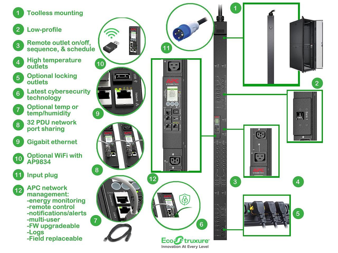 APC NetShelter Switched Rack PDU 9K series 0U 17.3kW 208V 20 C13/C15 12 C19/C21 outlets