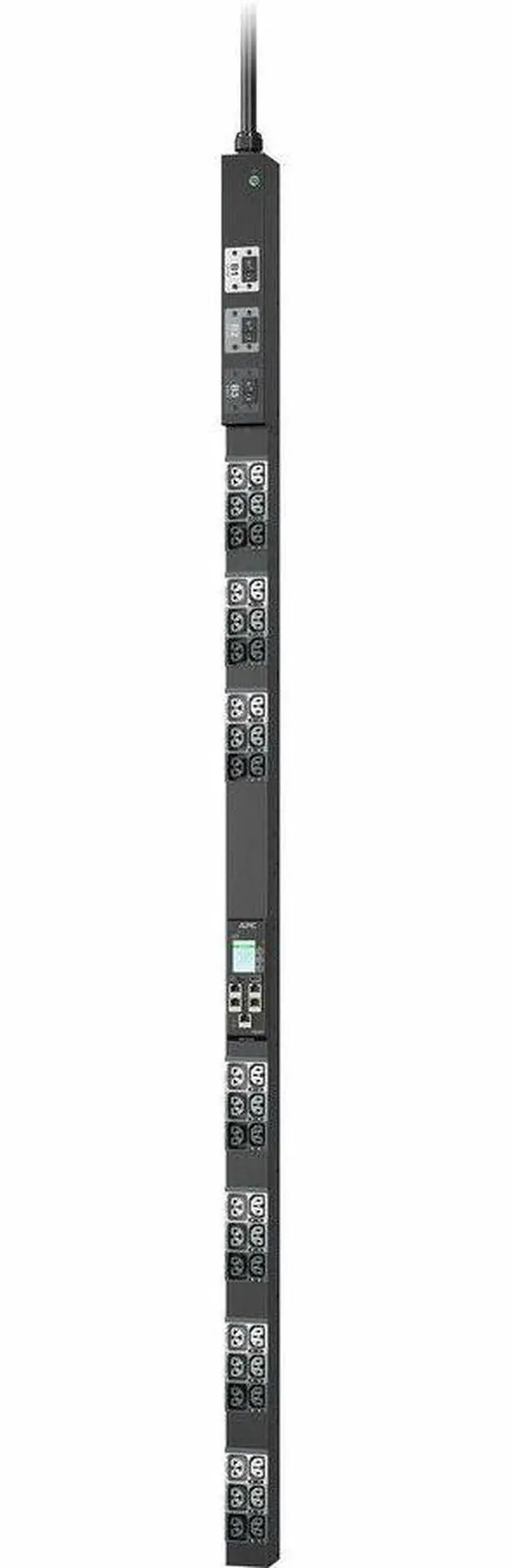 APC NetShelter Rack PDU Advanced (11K Series) provides reliable power distribution to IT equipment within server and/or networking racks. PDU level power metering provides power visibility and notification of potential overload. 4-in-1 combination outlets which can be used as either C13, C19, C15, or C21 outlets provide unparalleled deployment flexibility. Maximum outlet density with 42 outlets in a 2.2 in. (5.6 cm) wide form factor allows for more equipment in the rack. Outlets on the PDUs are color coded and labeled by breaker. Live Swap the NMC3 to minimize downtime in the unlikely event of an NMC power event. The rack PDU integrates with EcoStruxure IT through an NMC3 and can be accessed and configured via web, SNMP, and command line interface (CLI). A 10-foot (3-meter) input cord makes it easier for the PDU to reach the power supply. Rated to operate up to 60 C (140 F) at full load ensures reliability and availability even in today's high-density deployments. One gigabit Ethernet/network port (10/100/1000) enhances and standardizes network connectivity. Two link ports are available to cascade to up to 32 PDUs, with a network port sharing (NPS) feature to enable power sharing between Rack PDUs in the cascading group. Track or bill power usage confidently with 1% metering accuracy. Two environmental sensor ports allow for optional sensors (sold separately) to be connected. For data center deployments across multiple regions, these PDUs have the following certifications: UL, CE, CSA, UKCA, Nemiko, PSE, KC, China RoHS, RCM, and CMIM. This model's input power cord is L21-30P and features 21 count C13/C15/C19/C21 combo outlets and 21 count C13/C15 outlets.