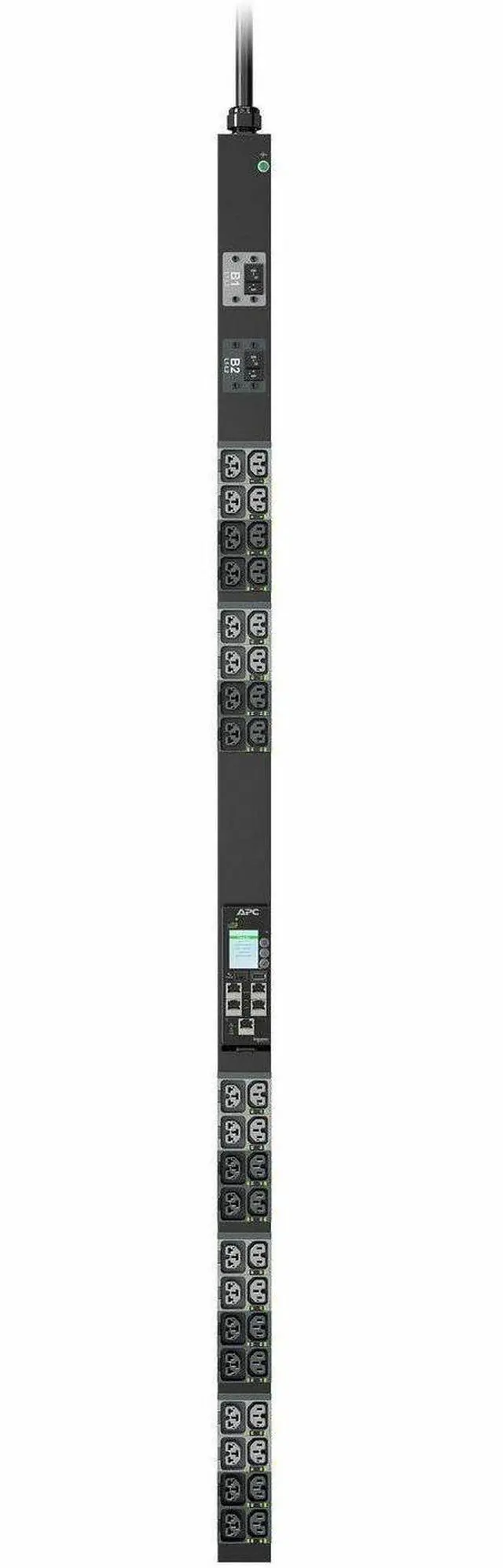 APC NetShelter Rack PDU Advanced (11K Series) provides reliable power distribution to IT equipment within server and/or networking racks. Switched outlets allow for turning outlets on or off remotely. Outlet and PDU level power metering provide power visibility and notification of potential overload. 4-in-1 combination outlets which can be used as either C13, C19, C15, or C21 outlets provide unparalleled deployment flexibility. Maximum outlet density with 40 outlets in a 2.2 in. ( 5.6 cm) wide form factor allows for more equipment in the rack. Outlets on the PDUs are color coded and labeled by breaker.
