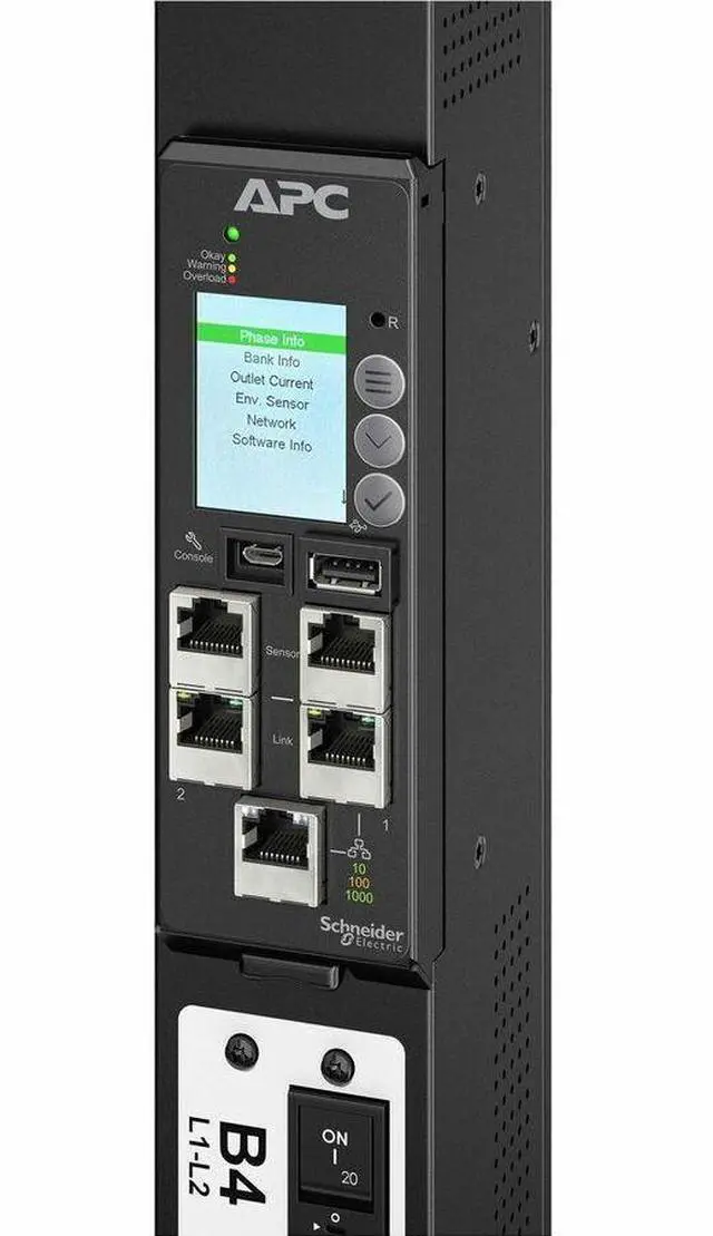 APC NetShelter Rack PDU Advanced (11K Series) provides reliable power distribution to IT equipment within server and/or networking racks. PDU level power metering provides power visibility and notification of potential overload. 4 in 1 combination outlets which can be used as either C13, C19, C15, or C21 outlets provide unparalleled deployment flexibility. Maximum outlet density with 42 outlets in a 2.2 in. ( 5.6 cm) wide form factor allows for more equipment in the rack. Outlets on the PDUs are color coded and labeled by breaker. Live Swap the NMC3 to minimize downtime in the unlikely event of an NMC power event.