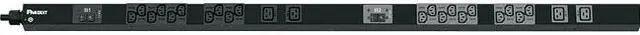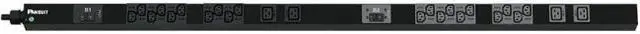 The 30A, 208V, vertical single phase PDU has (20) C13 and (4) C19 receptacles, a 10 (3m) power cord with a NEMA L6-30P plug, and measures 58.7"L x 2.0"W x 2.1"D (1491mm x 50.8mm x 53.3mm). UL Listed. Color: Black