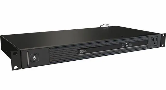 The Middle Atlantic PDX-920R is a 20A NEXSYS PDU featuring (9) NEMA 5-20R outlets, making it ideal for 'behind-the-display' applications such as digital signage. Its compact design includes two mounting options-a clamp and L-brackets-for flexible installation. These mounting solutions can be easily attached to a Lever Lock plate for tool-free mounting inside a rack, kiosk, or in-wall box. The PDU offers multi-stage surge protection and visual indicators of surge status on the front and side. It also includes selectable on/off voltage protection from the dry contact port, which safeguards sensitive equipment from over/under voltage scenarios by automatically turning off the outlets during such events and restoring them once the voltage is within the acceptable range. For cleaner cable management, you can select your desired length of power cord, with a standard 9ft cord included. The outlets are oriented to prevent blocked outlets, allowing you to use both outlets even with DC transformers (wall warts).
